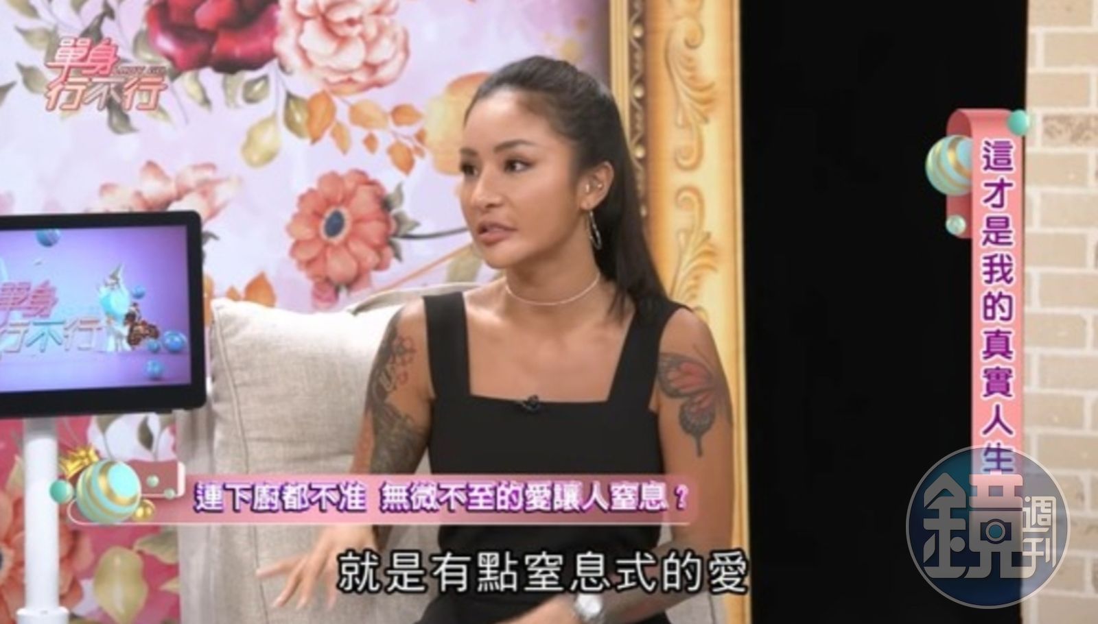 梁云菲跟金剛交往時,每天都是他包辦家務,想下廚還會被拒絕,因為金剛怕她削到手,她連頭髮都是金剛幫忙洗。雖然被無微不至的照顧,但梁云菲慢慢感覺窒息,「雖然他很疼我,他幫我打理好所有,但是用另外一面去看,他好像太掌控我了,變得活到愈後面,我覺得我沒有自己了。我很像寵物,他很像我的監護人。」
