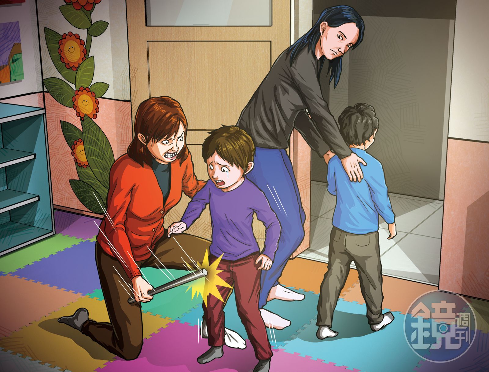 B小姐說:「我發現兒子的小腿突然出現大片瘀青,老師一問三不知,後來才陸續從3位家長的口中得知,兒子被老師拖行撞到桌角才受傷,有些小朋友甚至已經習慣,常不哭不鬧地任由老師施暴。」