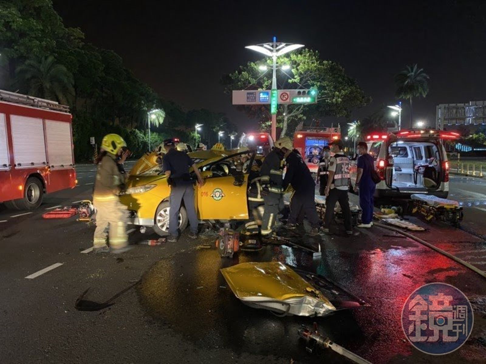 在小客車高速撞擊下,計程車尾部扭曲變形,車上駕駛及乘客受困,警消花了一番功夫才將受困人員拉出急救並送醫,但仍不治。肇事的43歲沈姓駕駛,額頭及下巴、雙膝蓋有撕裂傷,右胸兩根肋骨斷裂,目前在加護病房治療觀察中。警方經抽血初步報告為無酒精反應。阮綜合醫院指出 ,沈姓駕駛之前有治療癲癇紀錄。