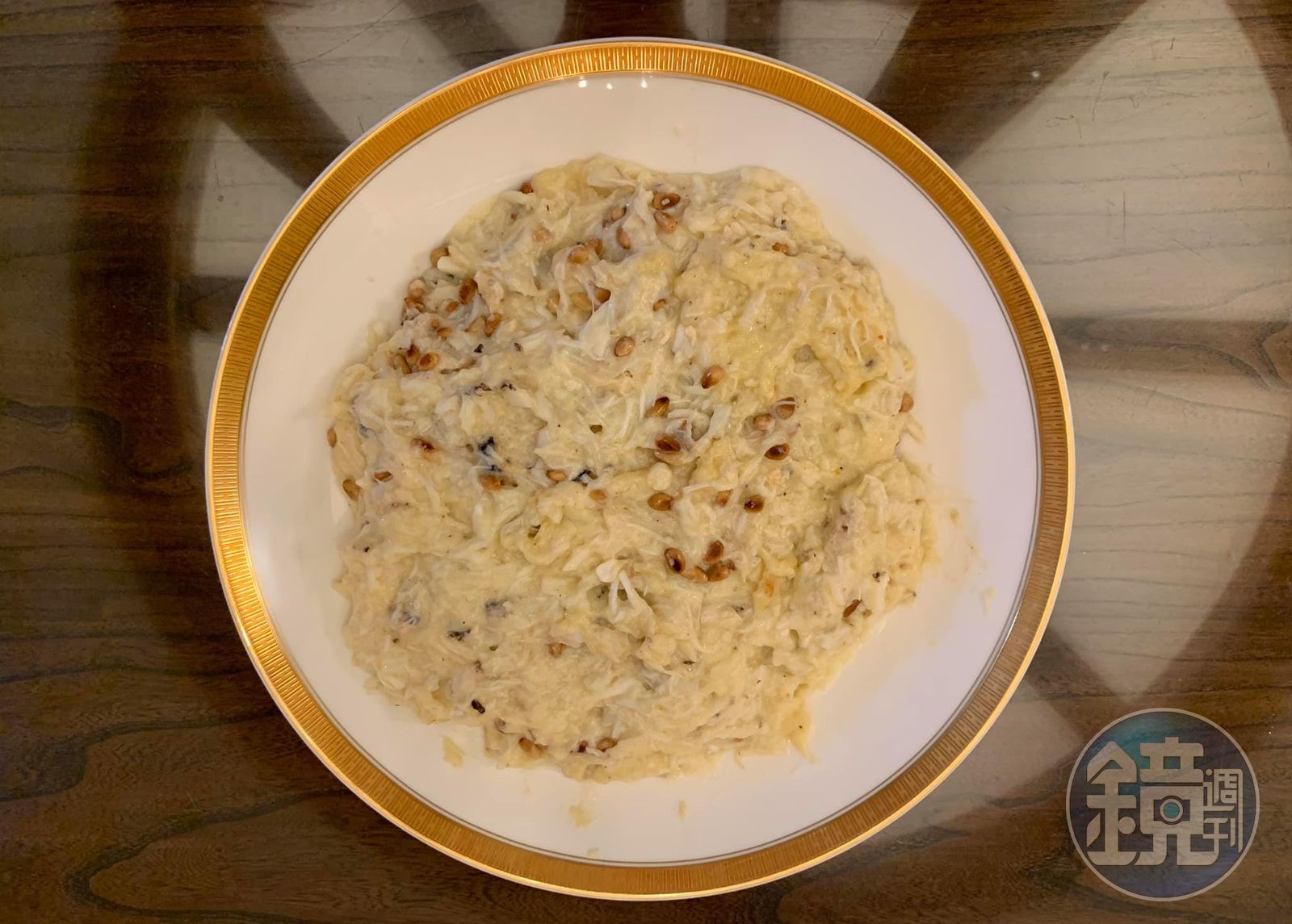 我今天做「鳳城炒鮮奶」,仍依書上國宴內容採用蟹肉,而且用松子代替欖仁。還有一樣不同,通常宴席上為了讓鳳城炒鮮奶堆得像山,所以下面墊了炸過的米粉。在家𥚃吃,我想到日本丼飯。在白米飯上淋上鳳城炒鮮奶,也就是蟹肉丼飯,多麼鮮美澎湃又實吃,就這樣吧!