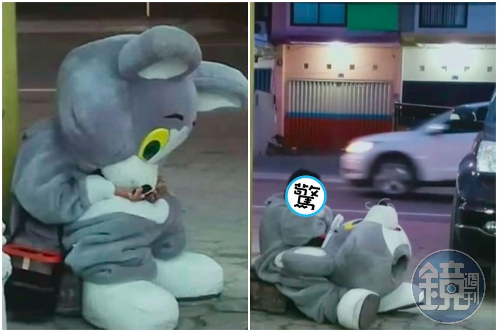 一名網友Rahmadi在IG上分享一段影片,影面內容由照片集合而成,穿著厚重的大兔子布偶裝坐在角落邊歇息的人,疲倦的低著頭,下一秒卻讓人心疼,因為頭套摘下後竟是一名小男孩,而該名小男孩就是年僅9歲的雷漢。