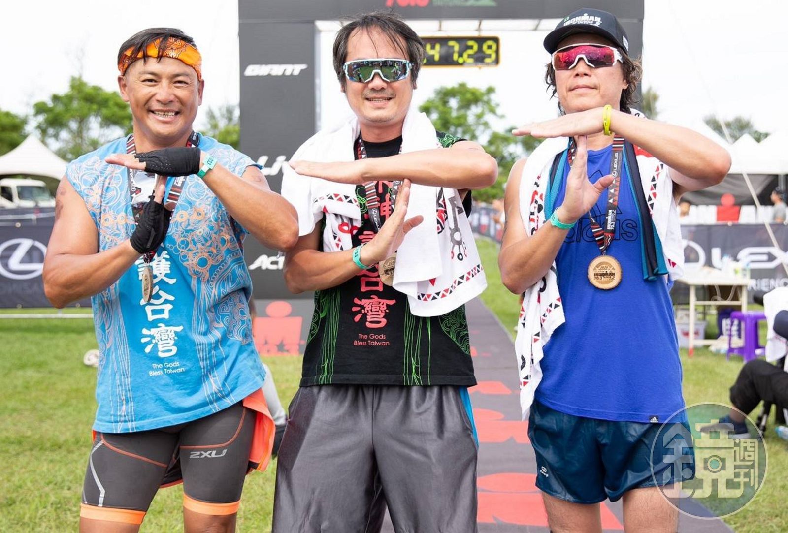 這次組團源於吉董搞烏龍,他原定報名個人組,卻報成團體接力,情急下拉好友白董、江宏恩成軍。比賽前一天適逢白董50歲生日,眾人在台東幫他過壽,壽宴兼作慶功宴,江宏恩笑說:「雖然大家平時都有落實自主訓練,但賽前先慶功實在不多見。」