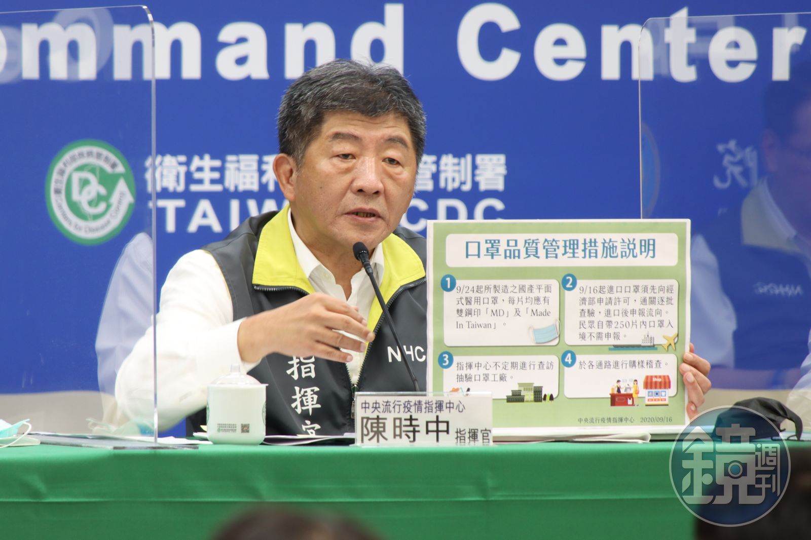 指揮中心表示,原訂自9月17日起實施國產製之平面式醫用口罩,以及實名制藥局販售之口罩均會有「MD」(代表醫療用)及「Made In Taiwan」雙鋼印標示,由於各口罩廠鋼印滾輪安裝與軟硬體調校作業需要更充裕時間,且鋪貨至藥局及超商的物流工作,需預留一定作業時間,經與各業者協調,將調整至9月24日起實施。