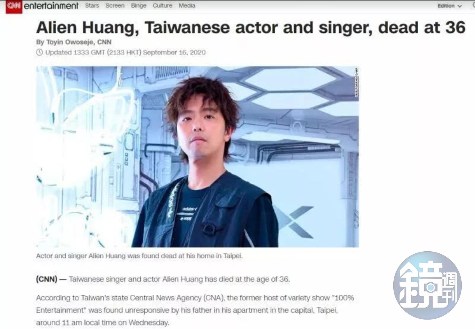 CNN的標題稱「Alien Huang, Taiwanese actor and singer, dead at 36」,意即台灣演員、歌手黃鴻升在36歲過世,並引用《中央社》的報導,寫著因為小鬼的父親連絡不到他,而到現場查看,卻在家中發現他的遺體,內文也介紹小鬼曾演出電影《一泡而紅》《陣頭》,也是節目《娛樂百分百》的前主持人。並介紹他曾發行過五張專輯和多首單曲,在日本、新加坡都有知名度。