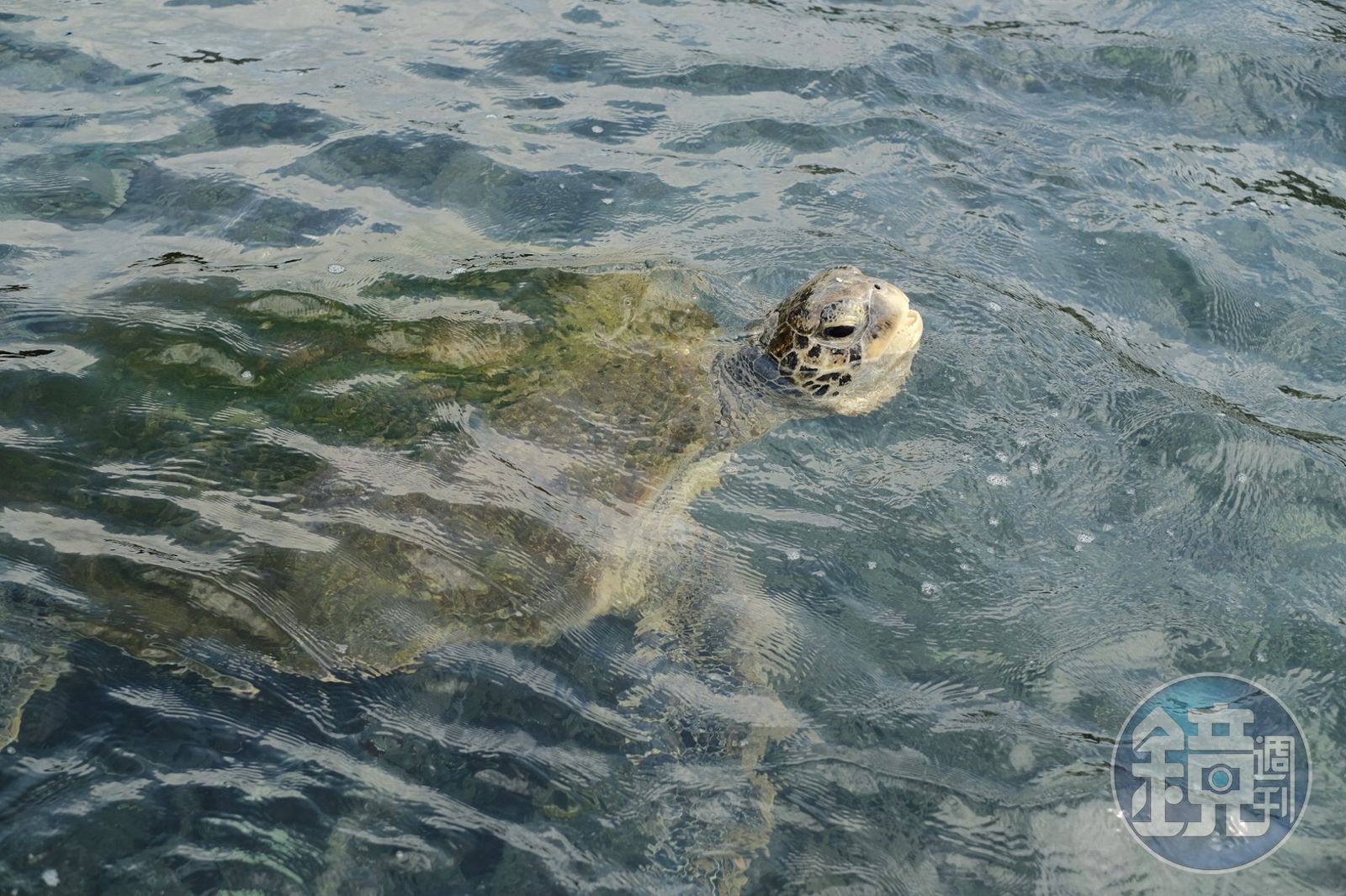 新北市動保處昨日再會同海洋大學、海保署前往查看,發現海龜已不在九孔池內,推測可能為日前大雨加上大潮,海龜自行游出脫困。據了解,自行脫困的綠蠵龜目測背甲約1公尺,活動力充足,屬成年龜。