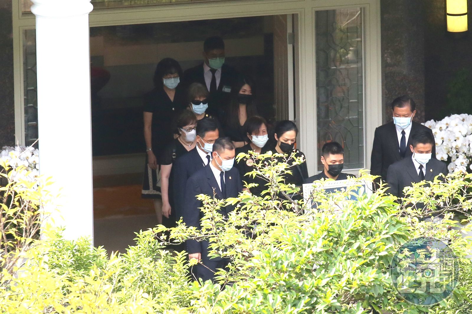 上午8時36分,李登輝的骨灰由孫女李坤儀捧抱著,遺照則由孫女婿趙贊凱抱著,移靈隊伍步出翠山莊住處,陸續上車出發。8時45分,移靈車隊從翠山莊出發。
