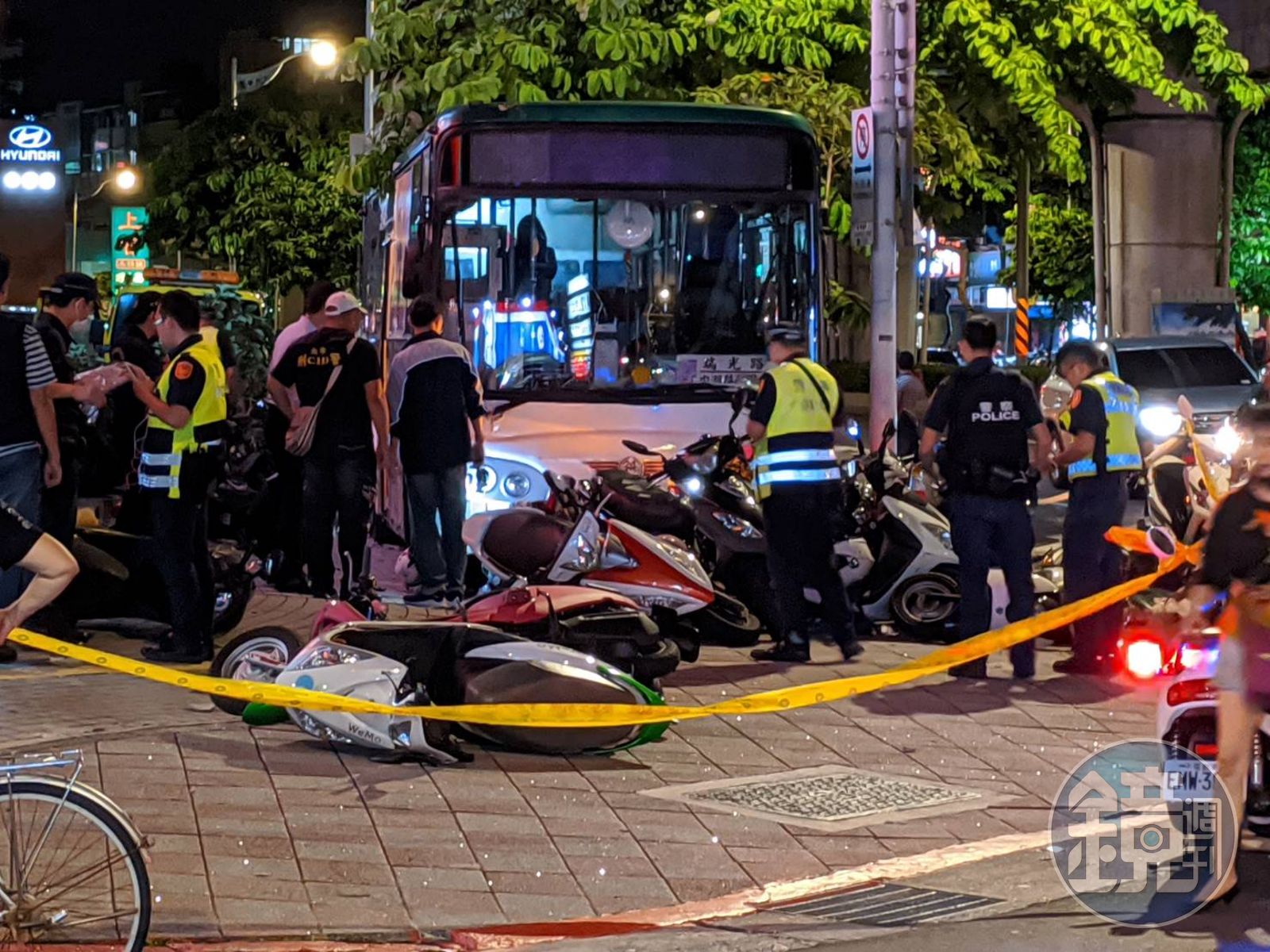 47歲的許姓司機駕駛昨晚行經內湖一處路口,行駛過程疑打瞌睡導致失控衝上人行道,一路撞毀24輛機車,一名54歲男子遭撞擊輾過,送醫搶救仍宣告不,另外正在巡邏的38歲鄭姓警員亦遭公車推撞,險些捲入車底,送醫治療後目前已出院;警方事後將肇事司機依過失致死罪嫌移送法辦。