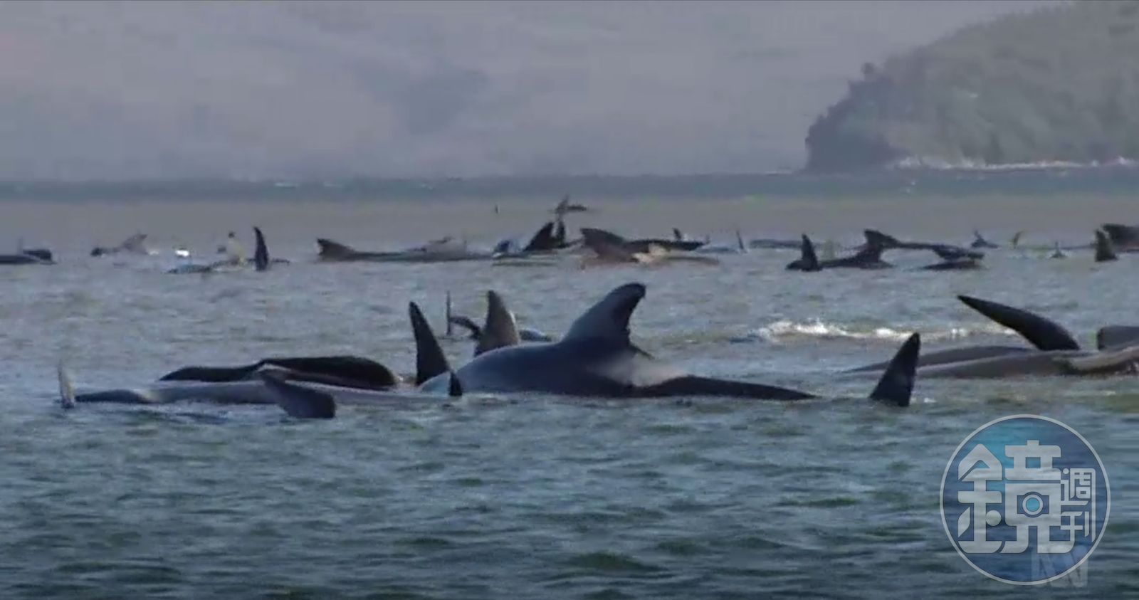 綜合外媒報導,澳洲塔斯馬尼亞州西海岸約有270頭領航鯨分別在3個不同地方擱淺,主要受困在距離麥格理角(Macquarie Heads)淺水區,海洋生物學家卡里昂(Carlyon)博士表示,救援人員會先救存活率較高及較容易接近的鯨魚,因為不少鯨魚擱淺的位置船隻無法抵達。他也痛心表示,恐怕有多達1/3的鯨魚,也就是90隻擱淺的領航鯨已經死亡。