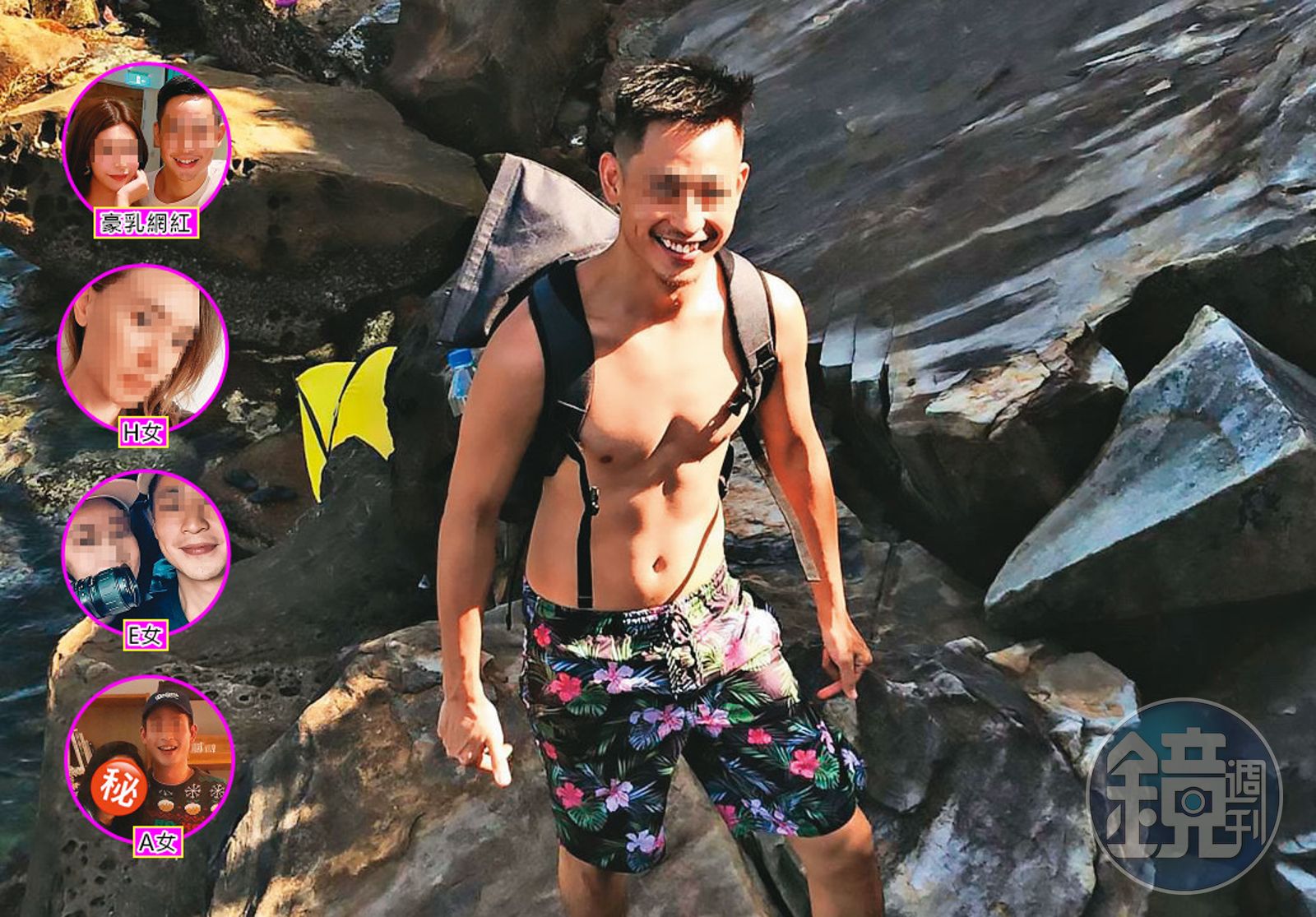 本刊循線找到他的前女友H,還原活逮前男友腳踏多條船的惡行,H女痛斥:「他根本就是一個同時劈腿8女的渣男,且是患有『彼得潘症候群』的套餐玩咖!」