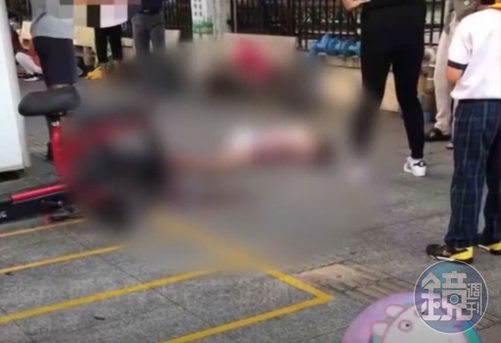 現場影片可見2名幼童倒臥在鮮血中,畫面怵目驚心。(翻攝自澎湃視頻)廣東省廣州市21日上午7點半左右,在番禺錦秀幼兒園近處發生一起駭人聽聞的隨機砍殺事件。報導指出,47歲的王男當時無預警持刀衝到幼兒園附近,見人就揮刀亂砍,隨後切腹自盡。有民眾拍下當時畫面,現場一片混亂,2名背著書包的學童倒在地上,地上血跡斑斑,十分嚇人。