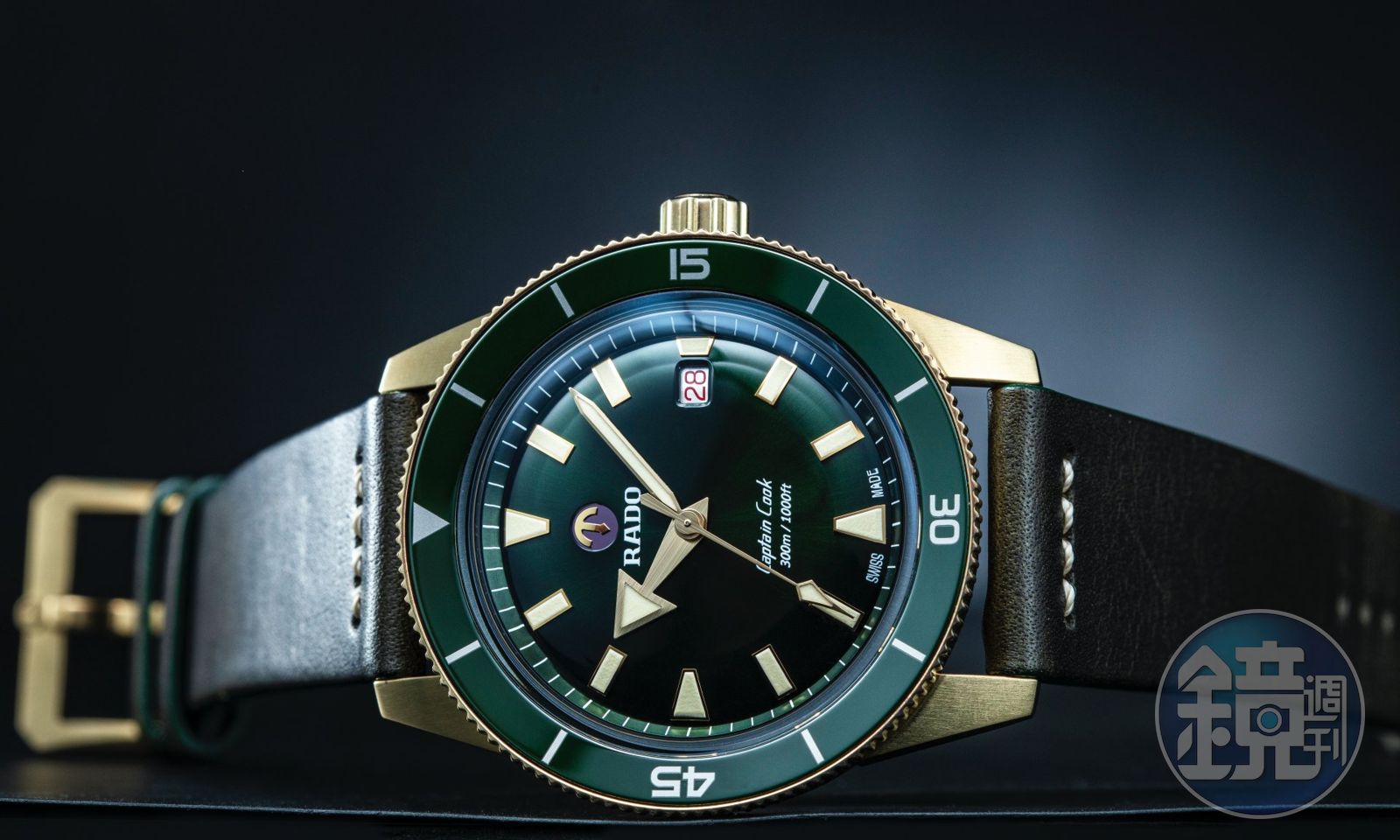 值得一提的是,雷達庫克船長系列的青銅錶,採用的是銅鋁合金,這種合金的氧化速度比傳統的銅錫合金還要慢,擁有比較好的耐腐蝕性,所以它錶殼變色的過程會比較久一點。而且,雷達還在錶殼上,鍍上一層薄度僅僅3微米的23K金鍍層。所以,錶迷們在買到新錶的時候,可以先享受到一隻金光閃閃的金色潛水錶,等到這一個K金鍍層隨著使用狀況被磨掉之後,錶殼才會開始進入變色程序,讓錶迷們可以觀察到整個佩戴過程的色澤變化。同時,這個系列還有一個更棒的地方是,它全系列都採用外拆錶帶,錶迷們可以隨時為自己的愛錶更換鍊帶、NATO帶,或是色彩鮮豔的皮錶帶,更有玩賞樂趣。