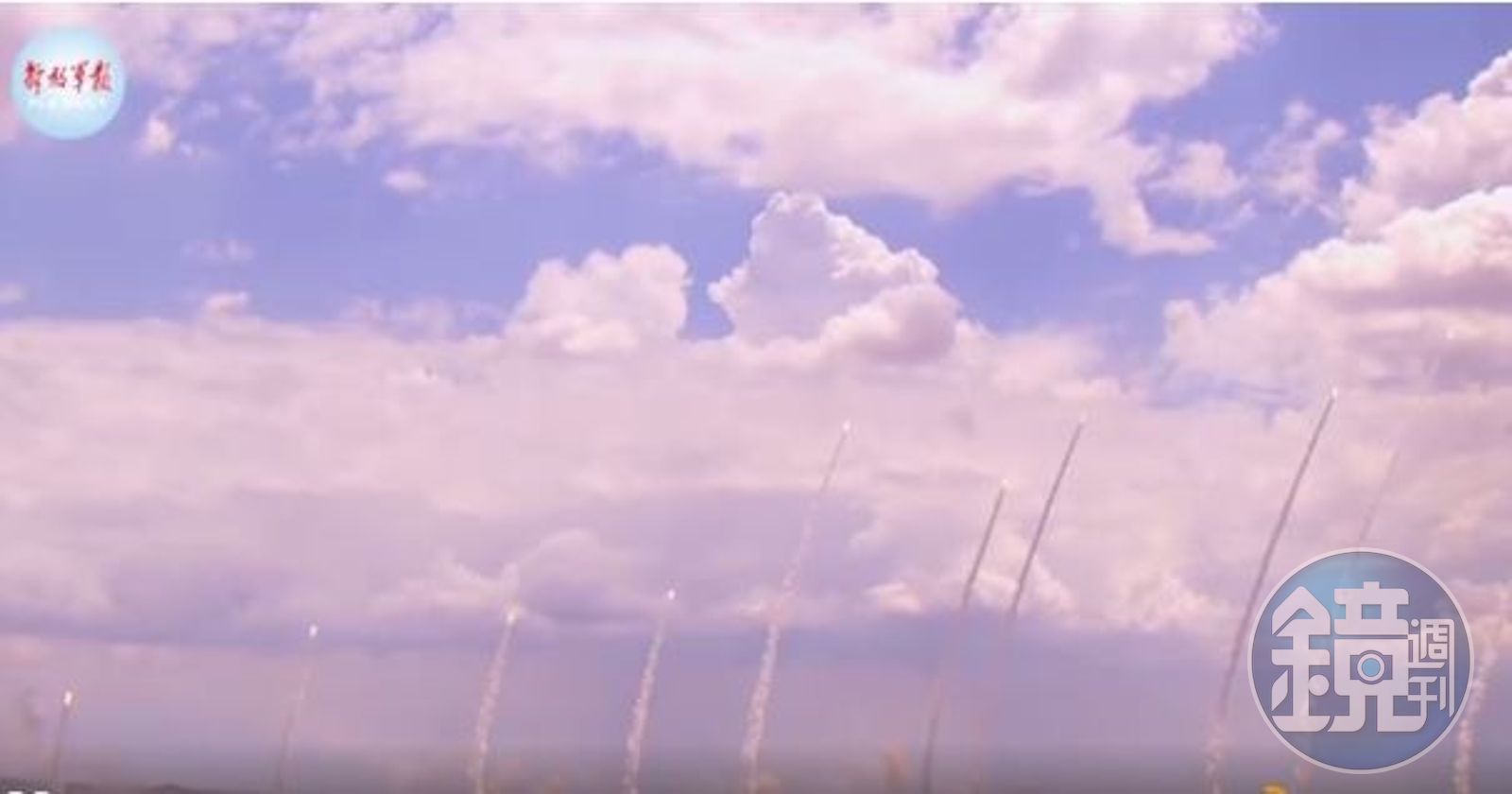 中共解放軍恫嚇升級,曝光一段約1分鐘連環放射飛彈的影片。(翻攝自解放軍報微博)
