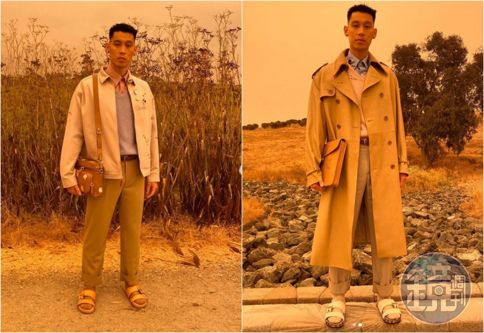 除了在球場上帥氣的模樣,迷倒一票粉絲,他也跨界當個時尚咖,今年5月加盟美國時尚品牌COACH,最近他現身在COACH的2021春夏系列Lookbook上,只見這位1米9的球星,瞬間化身「純情書生」的模樣,站在一片荒涼、天色昏黃的野外田間,身上穿著COACH的男士系列春夏時裝,褲腳反摺、腳上同時穿襪又穿涼鞋,照片一po出,被許多網友直呼看起來超像從家中翻出的泛黃舊照片,而林書豪的穿搭也活像個中國農村的鄉巴佬。
