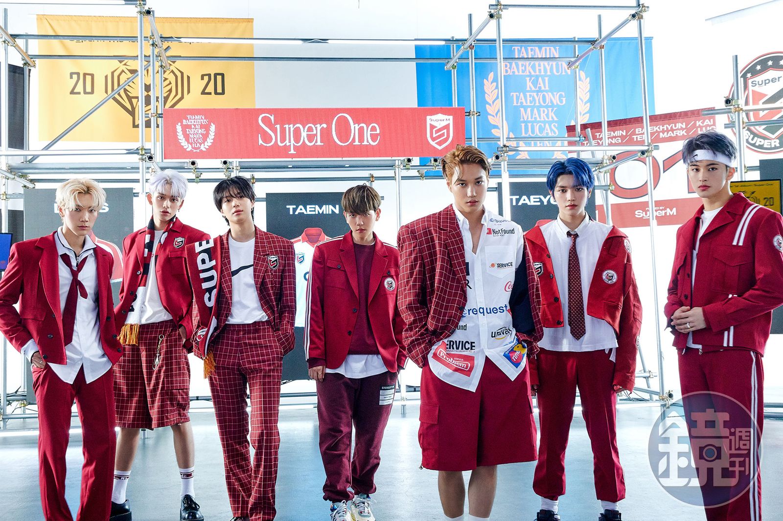SuperM是由SHINee泰民、EXO伯賢、KAI,與NCT127泰容與Mark、WayV的Lucas和Ten等7人組合,去年10月聲勢浩大在美國以同名專輯出道,是第一個以「出道專輯」登上告示牌200大專輯榜第一名的亞洲歌手。他們在人氣脫口秀〈艾倫秀 Ellen Show〉獻出主打〈Jogging〉出道演出,這次也特地在節目上公開首張正規專輯的主打歌〈One(Monster & Infinity)〉的舞台表演。