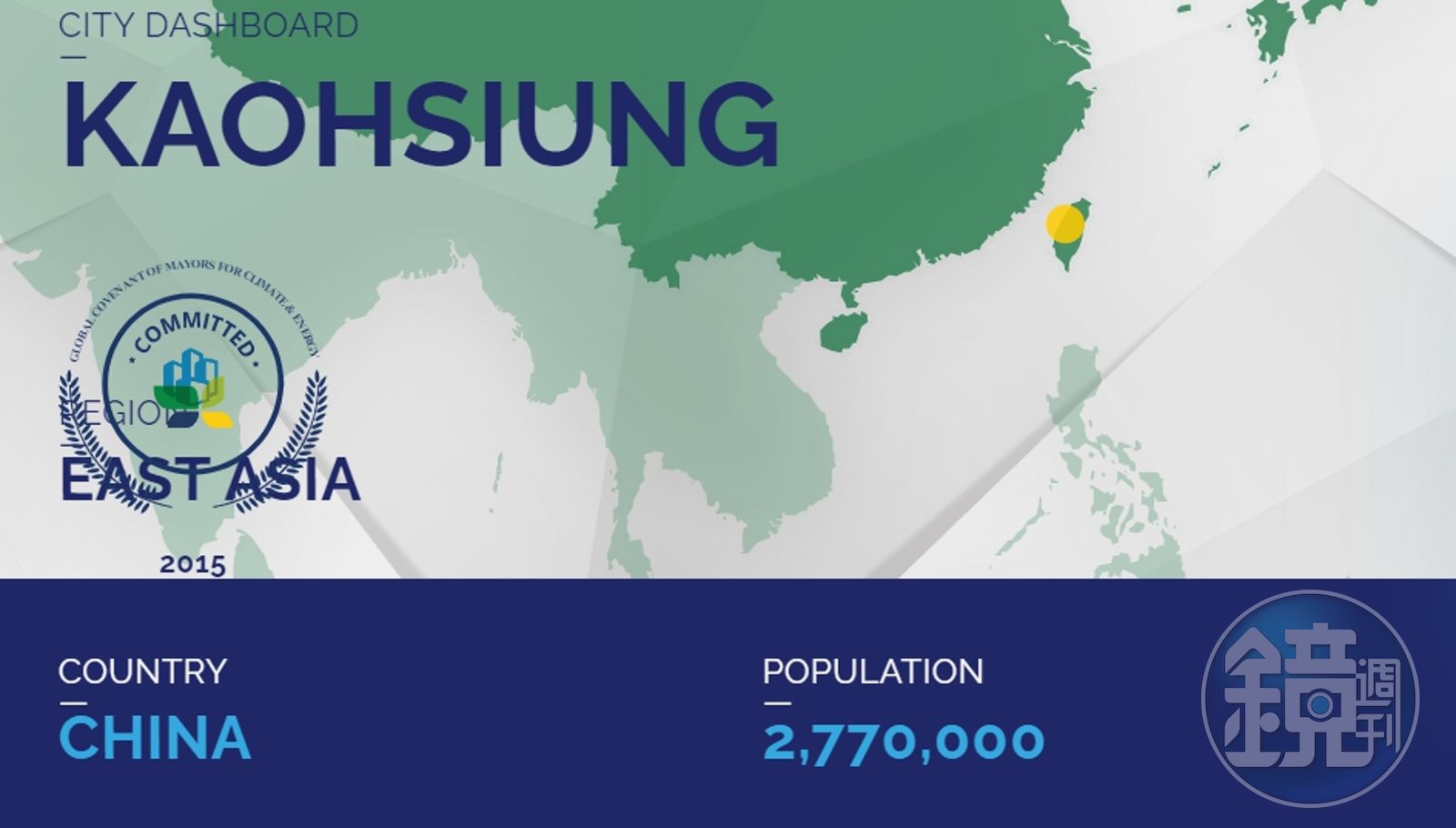 「全球氣候與能源市長聯盟」(Global Covenant of Mayors for Climate and Energy)在官網將台灣加入聯盟的城市國籍(6都)都改為「中國」,引發高雄市長陳其邁不滿,率先在臉書揭露消息,並向其提出抗議,要求更正國籍。外交部在稍早也表態拒絕遭受矮化,表示嚴正抗議,已透過相關駐館,要求該組織依據我方成為會員時的遞交文件名稱予以更正。