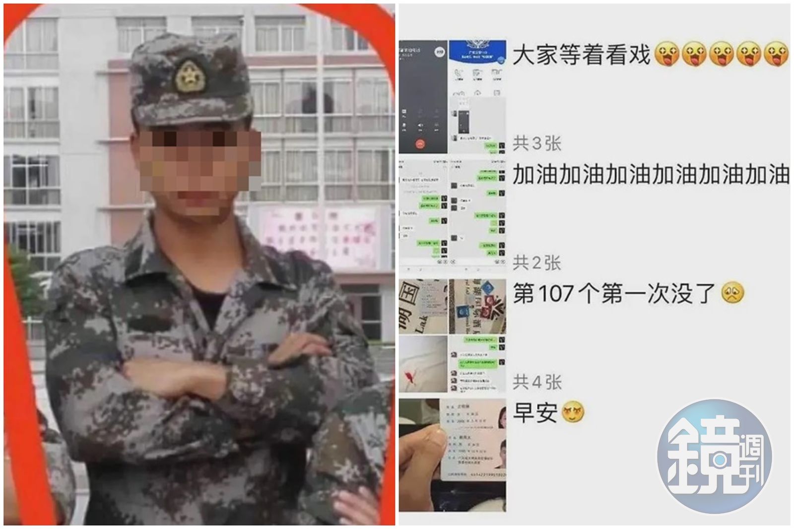 近日大陸網上爆出一篇文章,標題為「某技校教官亂搞學生,讓107位女生破處拿一血」,指控某技校教官濫用職權,花言巧語誘騙至少百名女學生與其發生性關係,而這名教官甚至把此行為當成「戰績」,將染血的床單照上傳群組,炫耀「第107個第1次沒了」。從曝光的截圖可見,渣男教官對於自己的行為非常自豪,驕傲表示「女朋友結婚了新郎不是我,但孩子的爸爸依然是我」「活在這個世界如果不泡妞感覺就挺無聊的」。