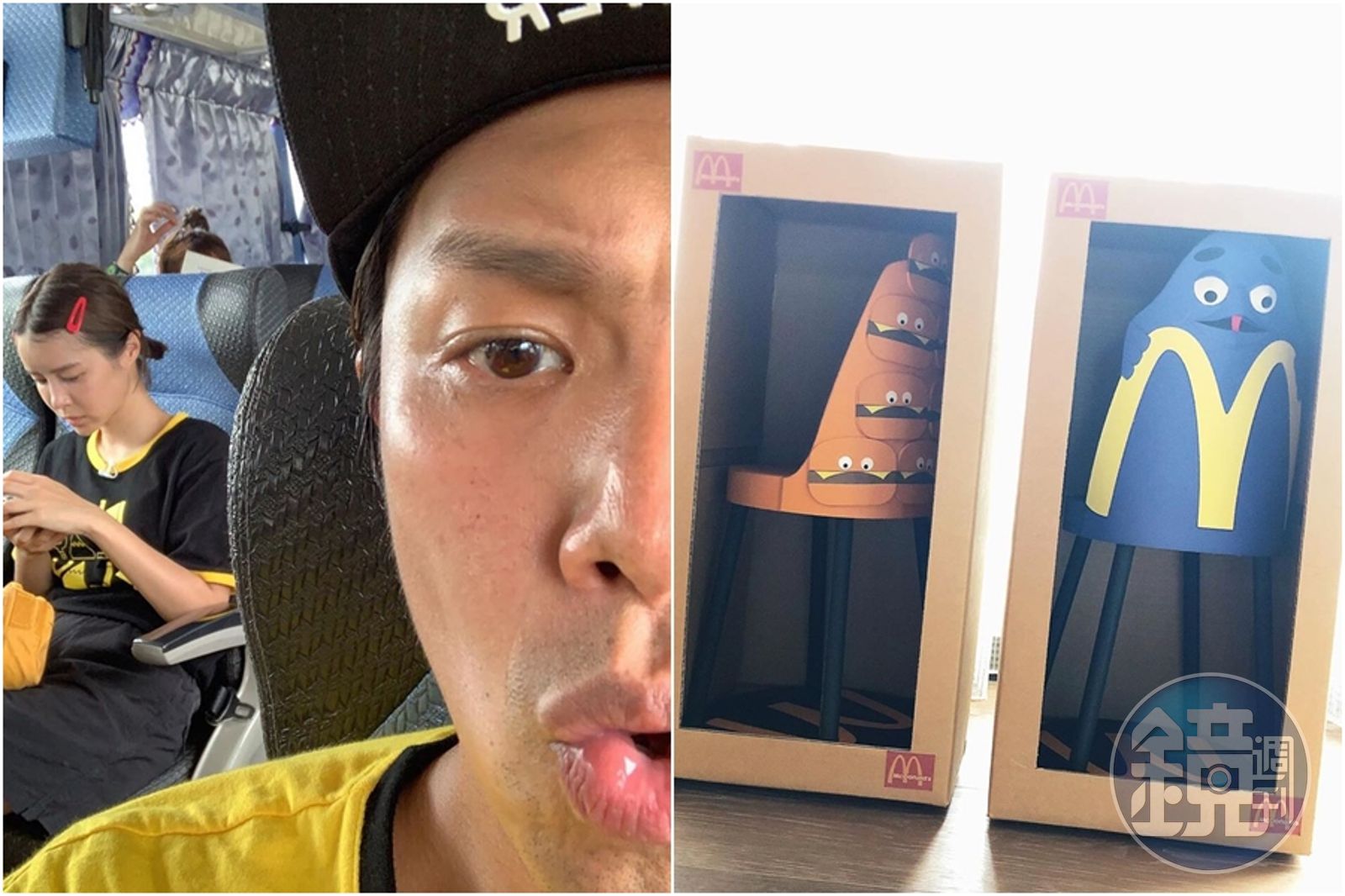 李佳穎回送兩張紙紮的漢堡及奶昔大哥的造型的「潮椅」給小鬼。(翻攝自李佳穎IG)李佳穎透露,前兩天才知道原來小鬼想要的是另一款單腳椅,雖然搞錯了但還是希望小鬼會喜歡,並祝大家中秋佳節快樂。