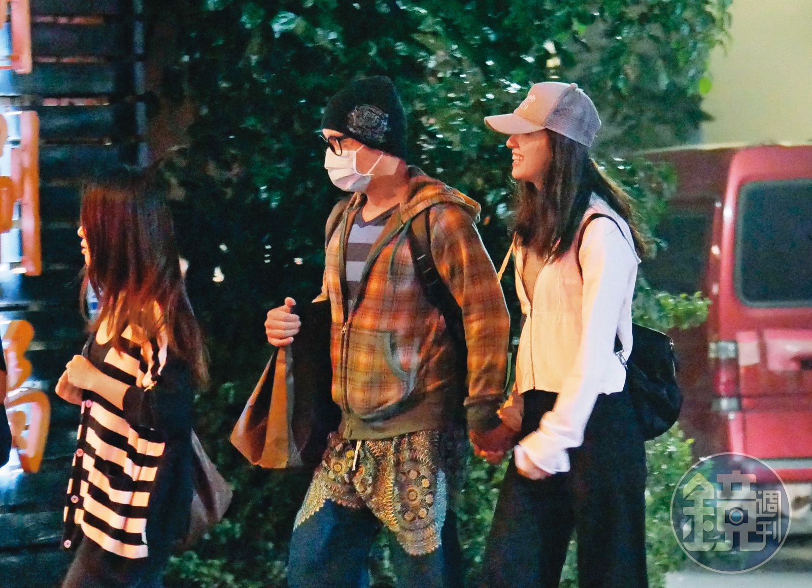田中千繪(右)與范逸臣(中)愛情長跑多年始終保持低調,即使一起出門也都包緊緊。發布時間:2020.09.30 05:58 臺北時間