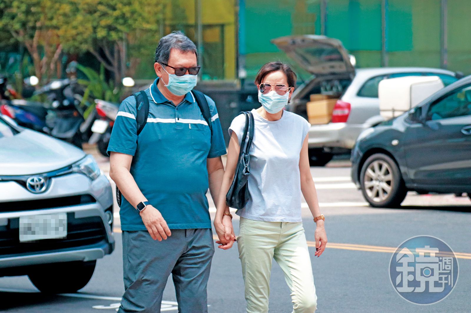 9月16日12:17,趙怡(左)與美魔女(右)在住所密會後出門,2人在口罩及墨鏡掩護下,公然在大街十指交扣。發布時間:2020.09.30 05:58 臺北時間