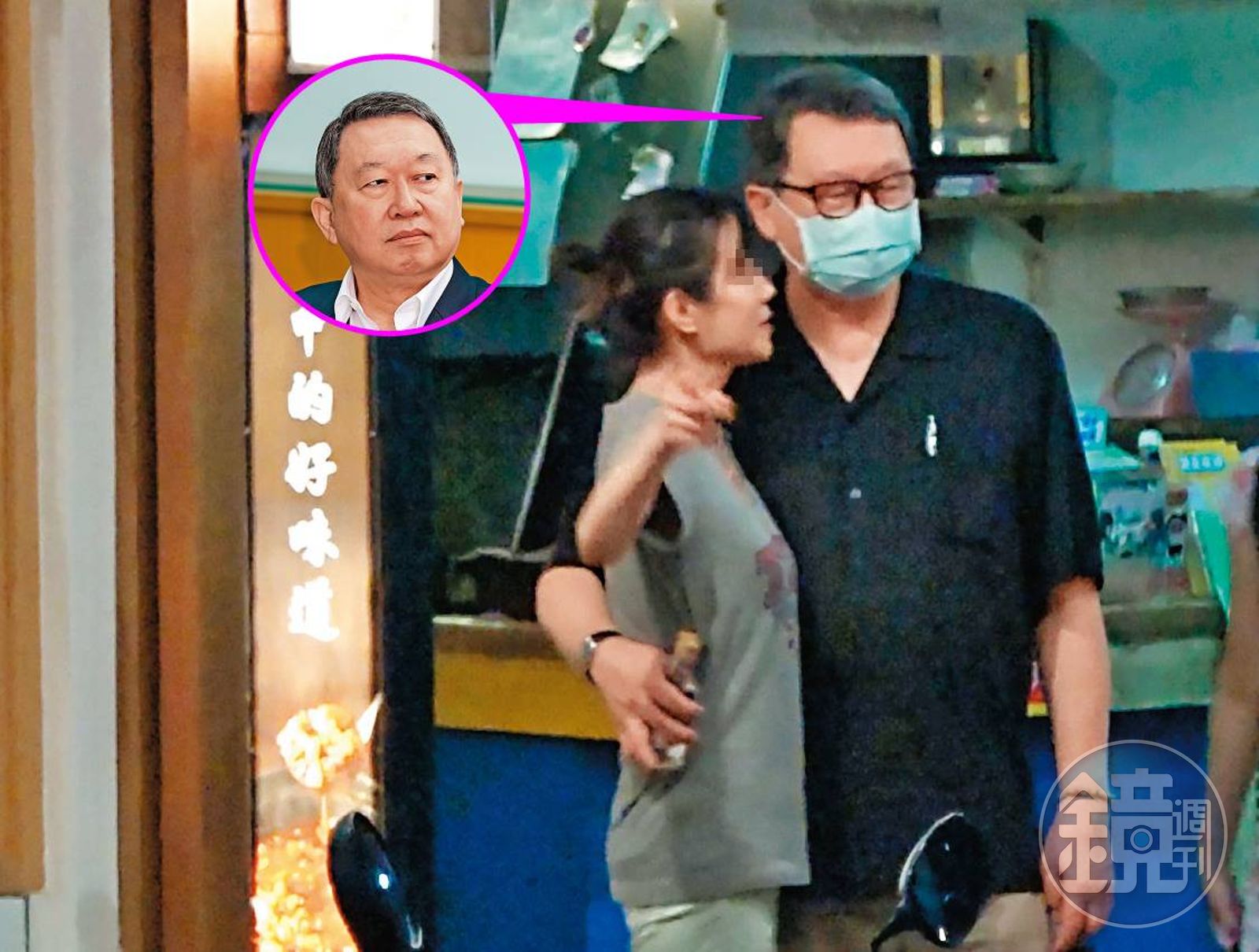 過了大約10分鐘,趙怡戴著口罩從電梯出來,原本背在肩上的包包已經不見,身邊則多了一名身材纖瘦、年約50出頭的熟女,親密地挽著他的胳臂,肩靠肩地與趙怡在附近的巷弄逛了起來。