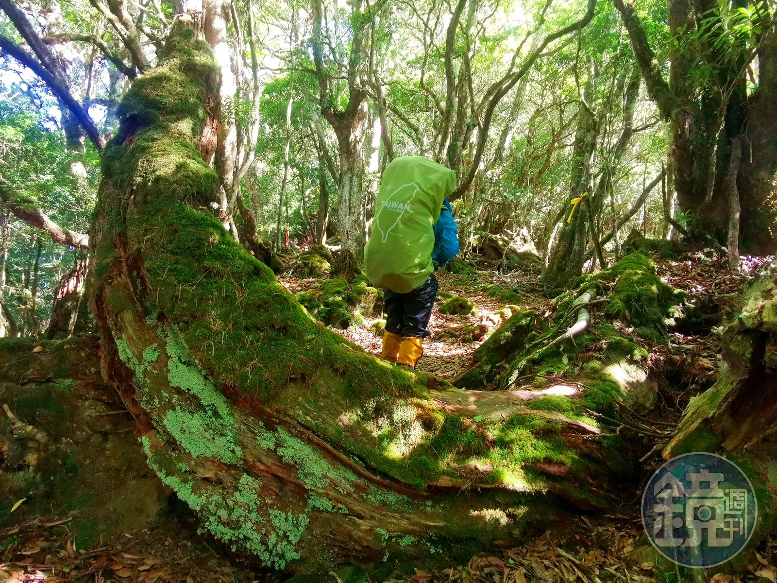 再往前行是0k索道頭,殘存由扁柏所建的鳥居,接下來還要下切1,000公尺回到文明世界,曾經的巨木也是經由這條索道運送下山,可見伐木運送過程雖然艱鉅,人類卻會因價值不斐而為之,過往的歷史已無法改變,只望台灣尚存的檜木,不再受人為破壞。