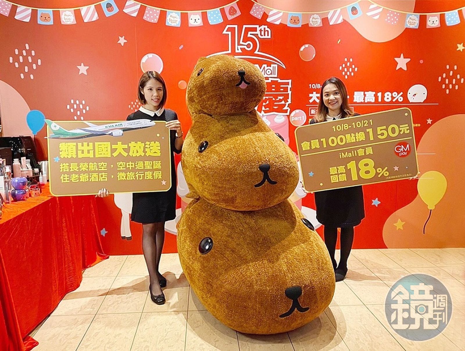 優惠之外,週年慶檔期更為百貨獨家跨界合作,包括與療癒系巨星「水豚君」合作,不僅於新北中和舉辦水豚君15週年展,還有獨家來店禮、人形燒甜點,以及人偶見面會。