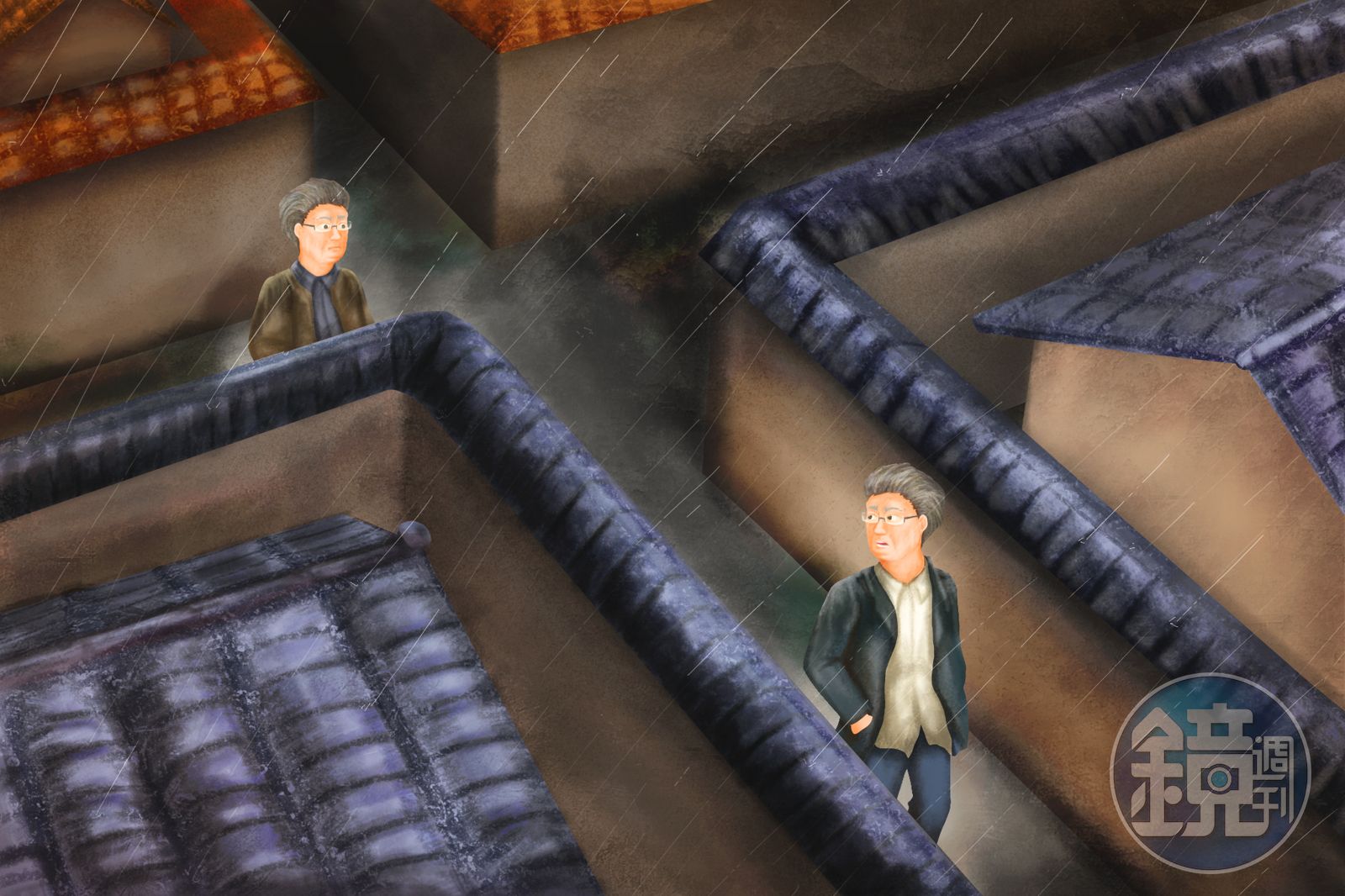 兩個上吊自殺的影子,由胡同連結