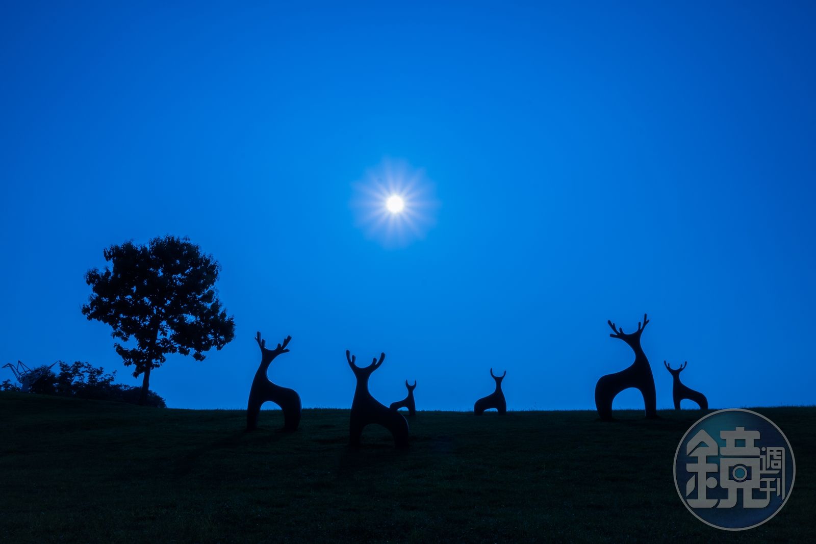 最吸引人的是占地11.2公頃的大草原,設立鹿群雕塑的靈感,來自於早期嘉南平原上有許多梅花鹿,設立的梅花鹿象徵回到早期人鹿共處的感覺,由於設立的方位正好對著日落的立置,因此每到黃昏時刻,遠遠望去,就像是真的梅花鹿在草原上的剪影。