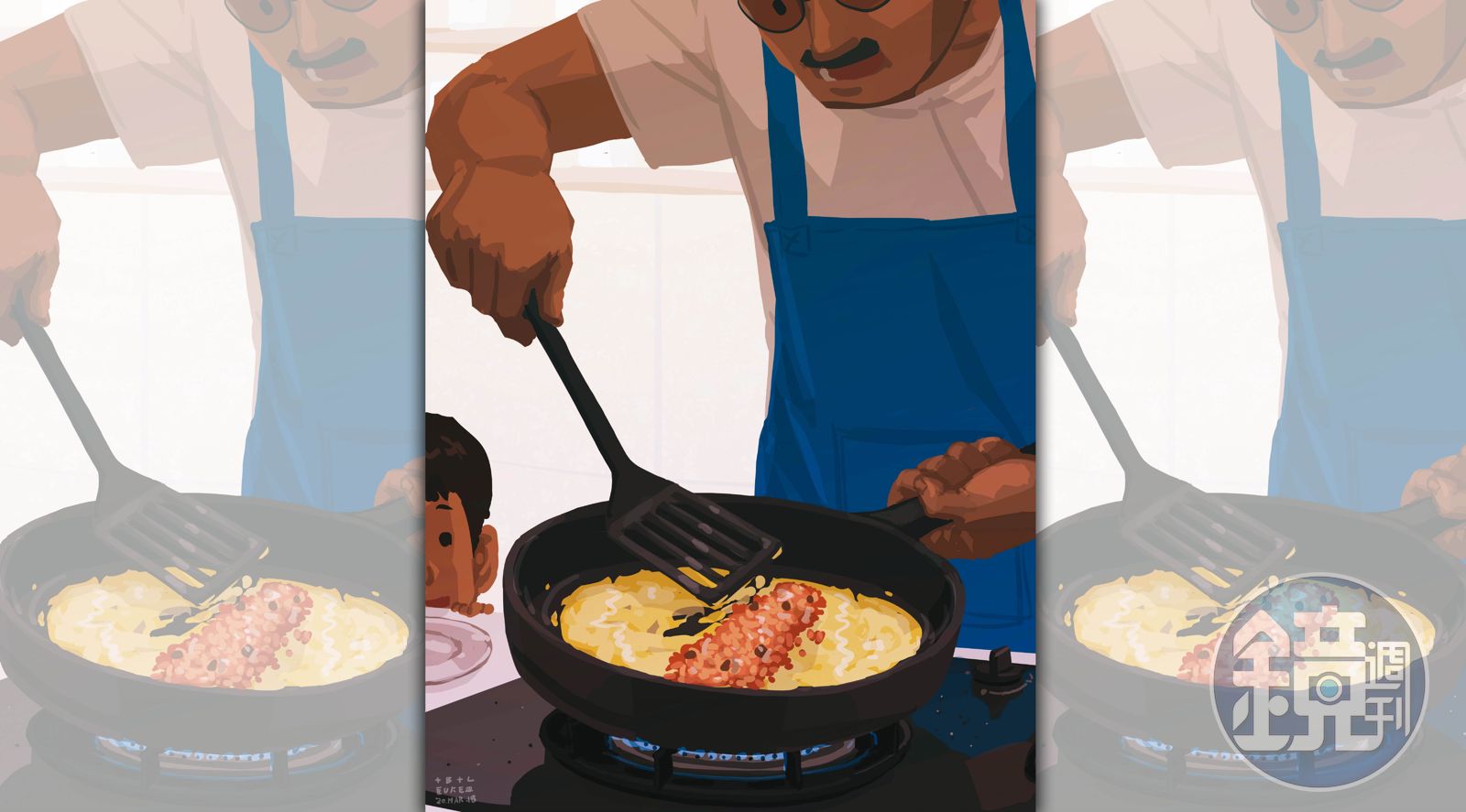 2020.10.27 05:58 臺北時間【單親爸爸週記】煮飯好難文化發布時間:2020.10.27 05:58 臺北時間更新時間:2023.09.12 20:36 臺北時間圖文︱藍聖傑 編輯︱翟翱已複製連結贊助本文加入訂閱會員煮飯單親爸爸週記藍聖傑當爸爸後開始學煮菜,不過都是很簡單的料理,例如蛋包飯。每當我快要煎失敗,兒子就會跑過來說:「好香喔」,一面眼巴巴的看著鍋子,一面帶著崇拜看我,是不是再怎麼手忙腳亂的父母,在小朋友眼裡都像英雄? 煮太多了,兒子心滿意足的說好吃好吃,我則在內心估算自己要吃幾天份的炒飯。忽然明瞭以前媽媽吃剩菜剩飯的苦心。藍聖傑小檔案插畫、動漫藝術家,以單幅插畫繪本呈現單親奶爸帶兒子的生活甘苦點滴,引發強烈共鳴,臉書上全球逾百萬人次分享。 更新時間|2023.09.12 20:36 臺北時間延伸閱讀【單親爸爸週記】看得太入迷【單親爸爸週記】泊車的方式【單親爸爸週記】觀光客體驗【單親爸爸週記】上菜市場支持鏡週刊小心意大意義小額贊助鏡週刊!贊助本文每期 $35 元動態話題報導無限閱讀解鎖新鮮事加入訂閱會員鏡週刊加入追蹤訂閱下載鏡週刊加入追蹤訂閱下載更多內容,歡迎 鏡週刊紙本雜誌、鏡週刊數位訂閱、了解內容授權資訊。獨家深度分析報導線上閱讀