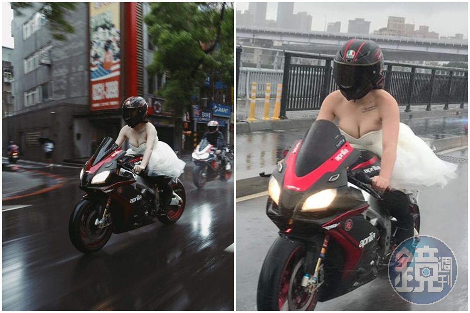 檔車正妹穿低胸婚紗追焦 過彎「太凶了」網暴動