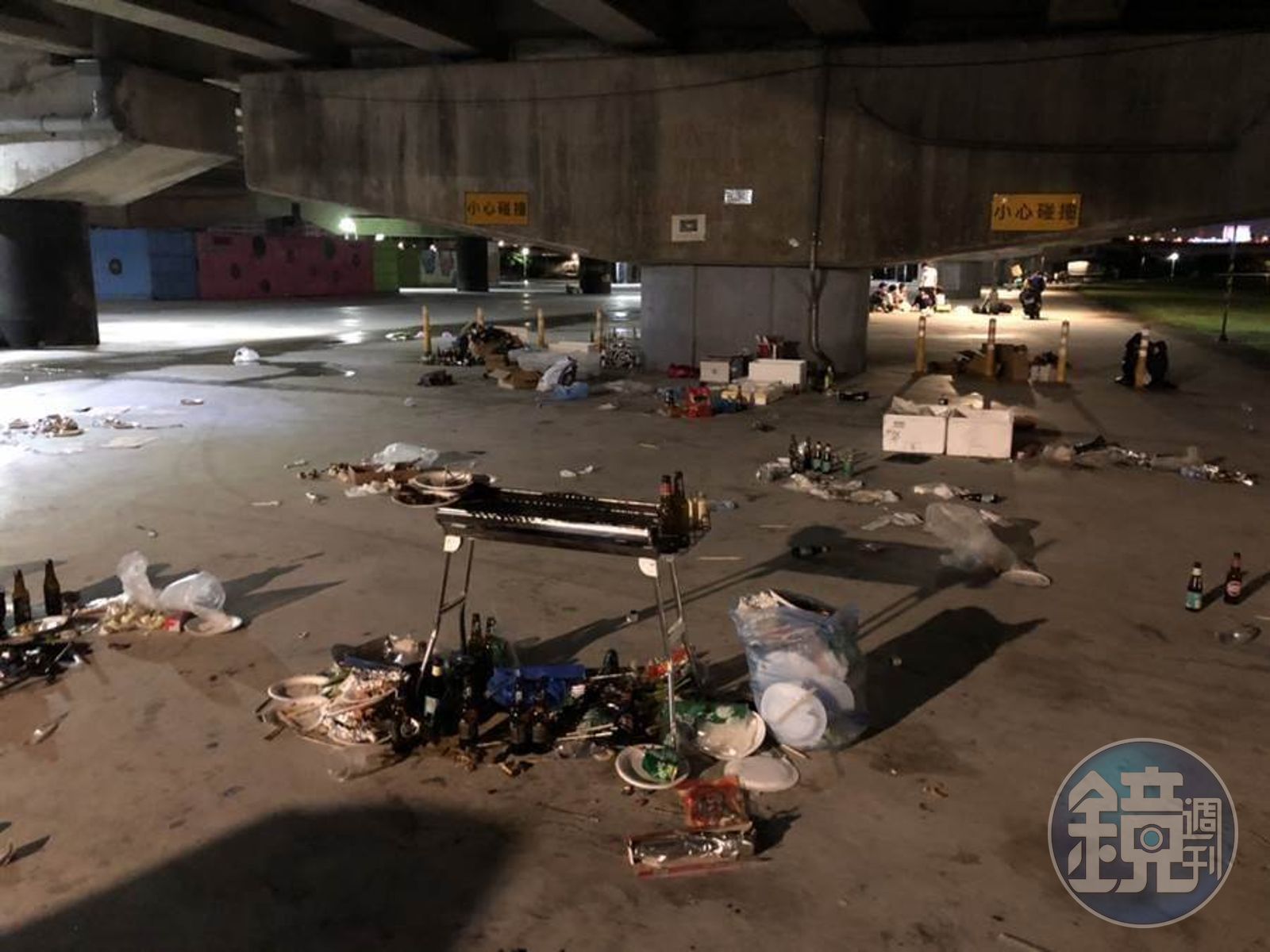 由於今年中秋連假天氣好,烤肉民眾多,留下的垃圾量爆增至60.07公噸,讓清潔單位須加派人力連夜清除;此外,水利處河管科長范振峰指出,市民熱線1999也接獲上百通抱怨電話,包含環境髒亂、設施遭破獲、未在規定區烤肉。