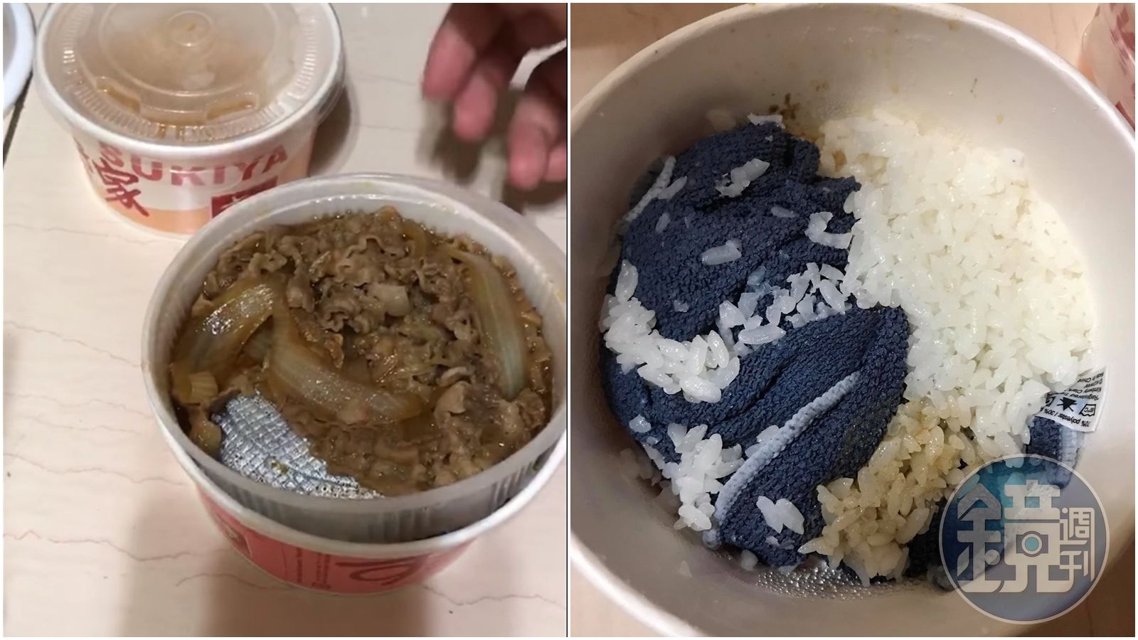新北市一名女子昨日晚間於臉書社團「爆怨公社」發文,並附上飯內夾有抹布的影像及外送單據等作為證據,她無奈寫道「今天的晚餐吃抹布」。該女子於外送平台選訂某知名丼飯店的牛丼飯,孰料送抵時,一打開餐盒卻見夾層飯碗中,竟混著一塊藍色抹布。