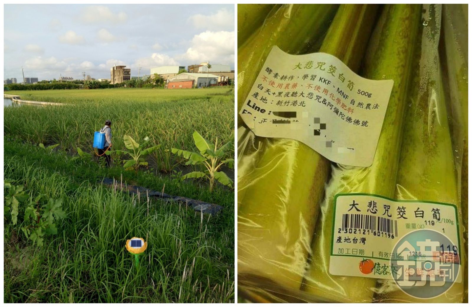 有網友在國內知名論壇PTT發文問卦,表示在知名超市驚見「大悲咒筊白筍」,產地在新竹港北,標示「酵素耕作,學習KKF、MNF自然農法」「不使用農藥、不使用化學肥料、白天+黑夜聽大悲咒&阿彌陀佛佛號」,500g售價119元。