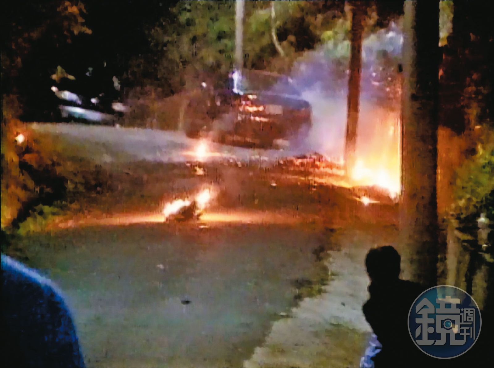 爆炸現場冒出一顆巨大的火球,火勢猛烈、直衝天際,連一旁的樹枝也因此著火,警方與消防隊員見狀立刻上前滅火,卻發現路面盡是黃金生炸碎的屍塊,軀幹也早已殘破不堪,確定他當場死亡。
