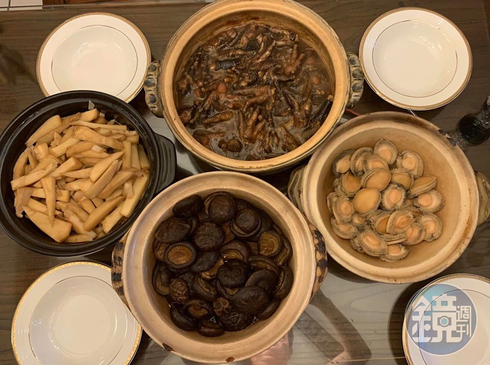 為什麼會用鮑魚汁燉雞腳,其實是從「華國飯店」偷學的。華國飯店董事長廖裕輝挖空心思試新菜,多年前推出砂鍋雞腳令人驚艷,我幾乎每次去華國都會吃到。當然,忍不住問了廖董,他面帶笑容神祕地説,別家做不到,我用鮑魚汁來燴雞腳,誠意十足。鮑魚汁的鮮甜拉升了雞腳風味,我一直記得這句話,今天就雙劍合壁,用香菇汁與鮑魚汁來砂鍋一下雞腳。