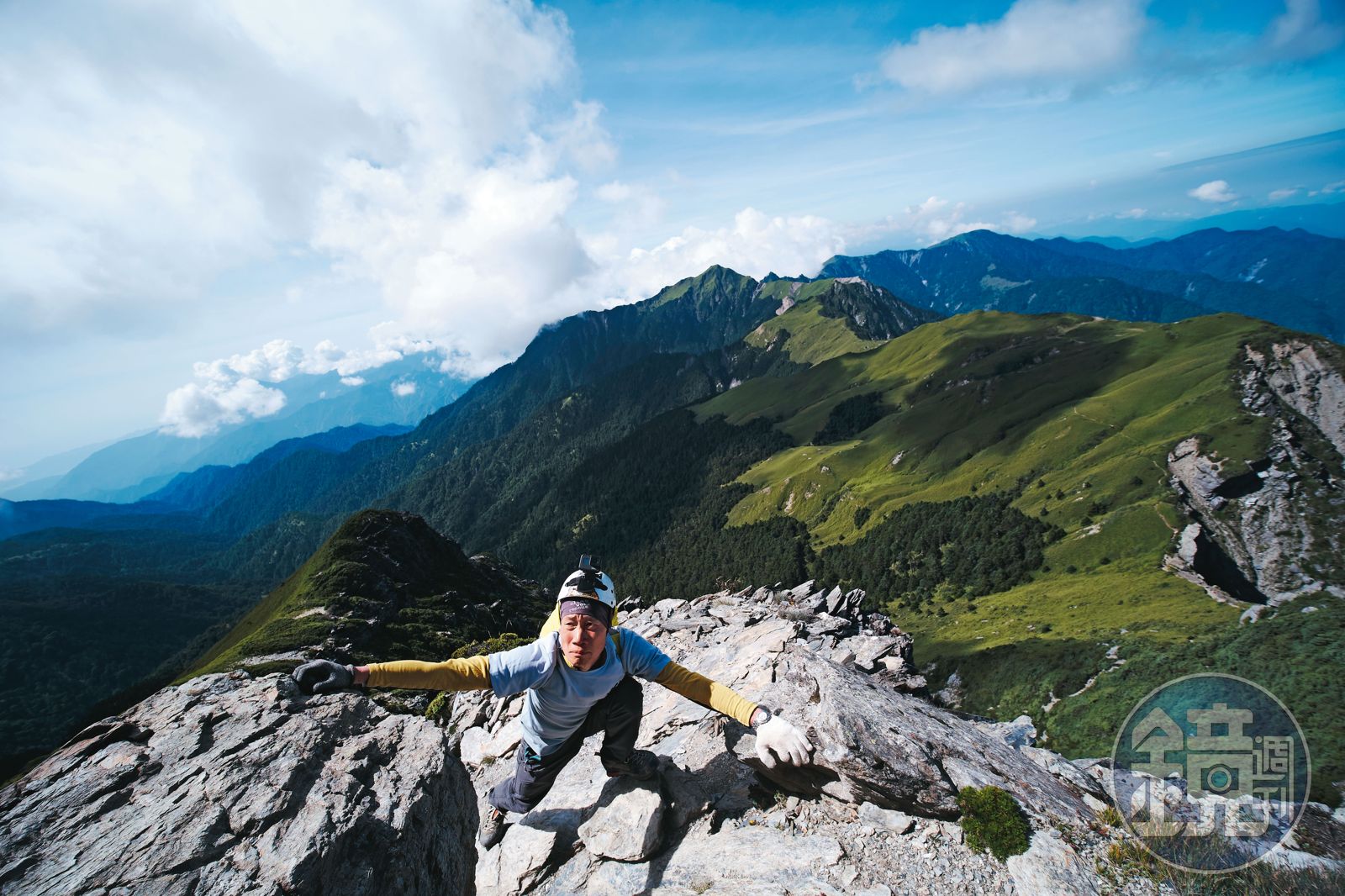 人生太難了,他開始瘋狂爬山,一爬十多天,「一開始純粹想走出去,爬了一座山,就想爬得更多、更遠、更快,然後不想回家,回到市區就很煩心,山裡像一個可以逃離的地方。」山友見他爬得勤,推薦他當兼職高山嚮導,「雖然打工收入微薄,但我能做就做,一方面賺錢,一方面是解脫,知道自己在社會上還有存在價值。」他假日帶隊登山,平日也兼差教攀岩、溯溪,漸漸在山裡找到歸屬感,1個月超過一半時間都在山上,6年前轉職成專職的高山嚮導。