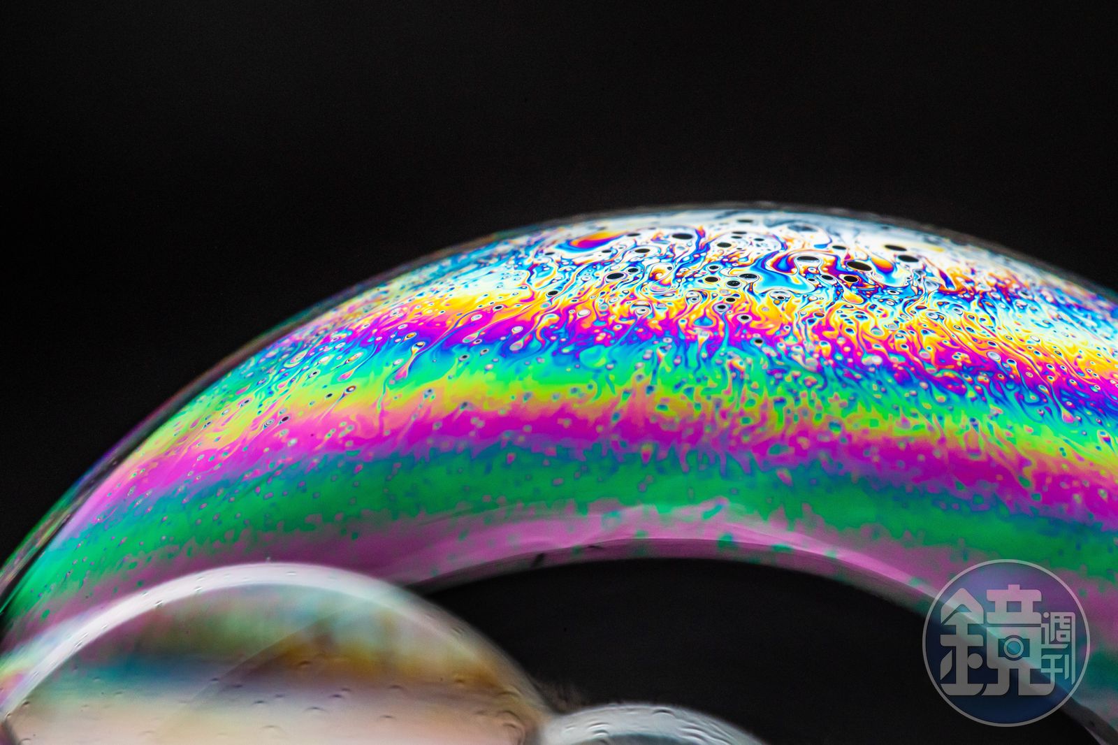 搭配適當的光線,近距離拍攝泡泡表面的分子流動,感覺像是小星球般的夢幻。發布時間:2020.10.24 06:30 臺北時間