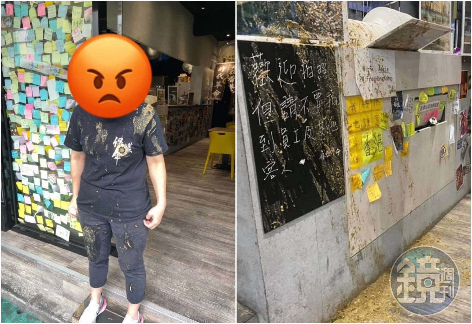 據了解,中午午餐時段,店內還有客人在用餐的情況下,突然有一名身穿黑衣、但著口罩和帽子的男子闖入「保護傘」,並拿著一桶預備的雞糞朝店長及廚房狂潑,店內人員閃避不及,身上被潑滿穢物,而廚房的廚具用品也都遭殃。