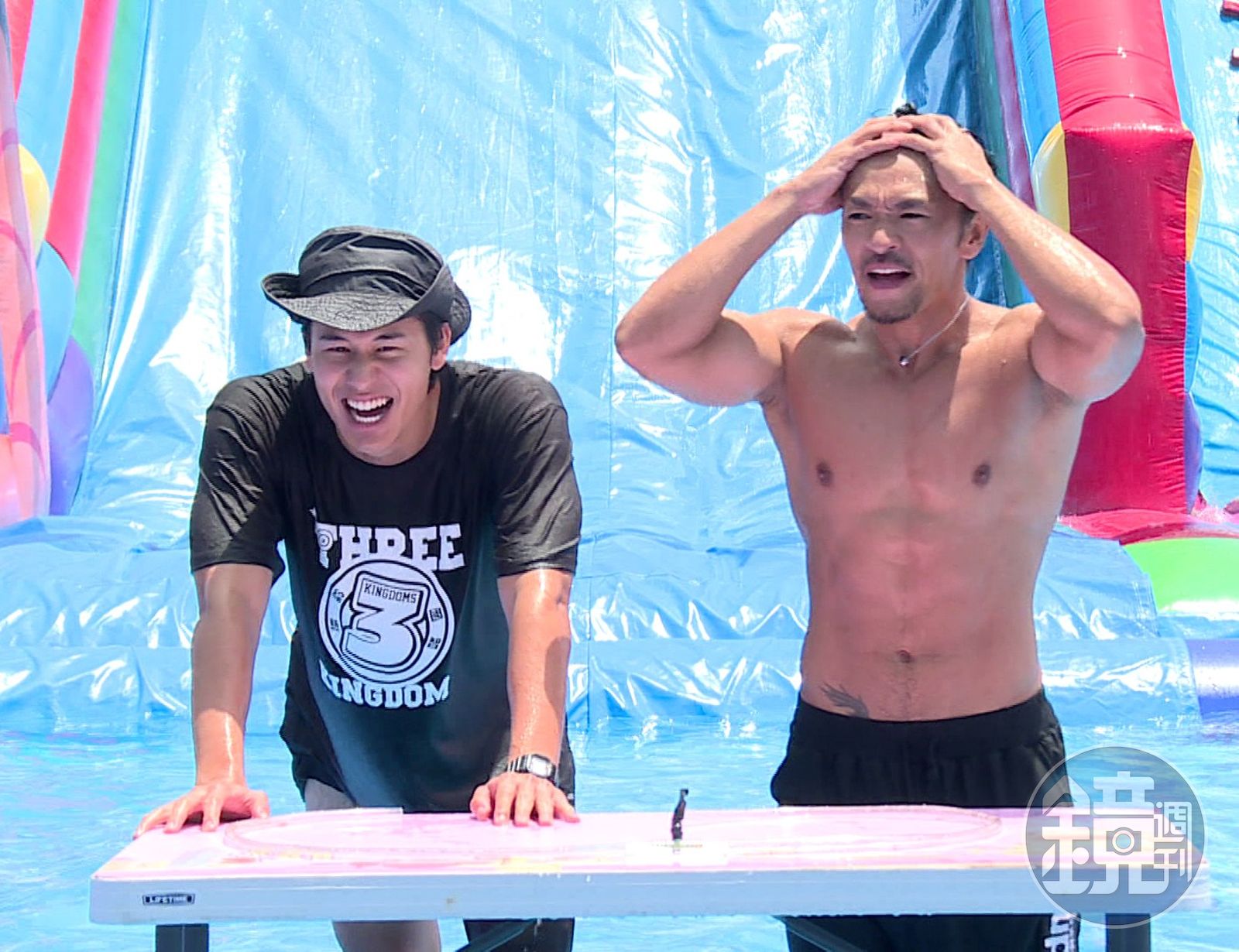 一行人在水池裡闖關,夢多大方將上衣褪去,精壯的身材讓主持群看了大呼過癮,瑪麗笑說:「魔王不是都不穿衣服的嗎?」慫恿風田脫衣一較高下。自知比不上夢多的風田,只好全身包得緊緊,靦腆回應:「我本來以為最近變壯了,但看到夢多就覺得自己好丟臉喔!再給我3個月、一定練好!」