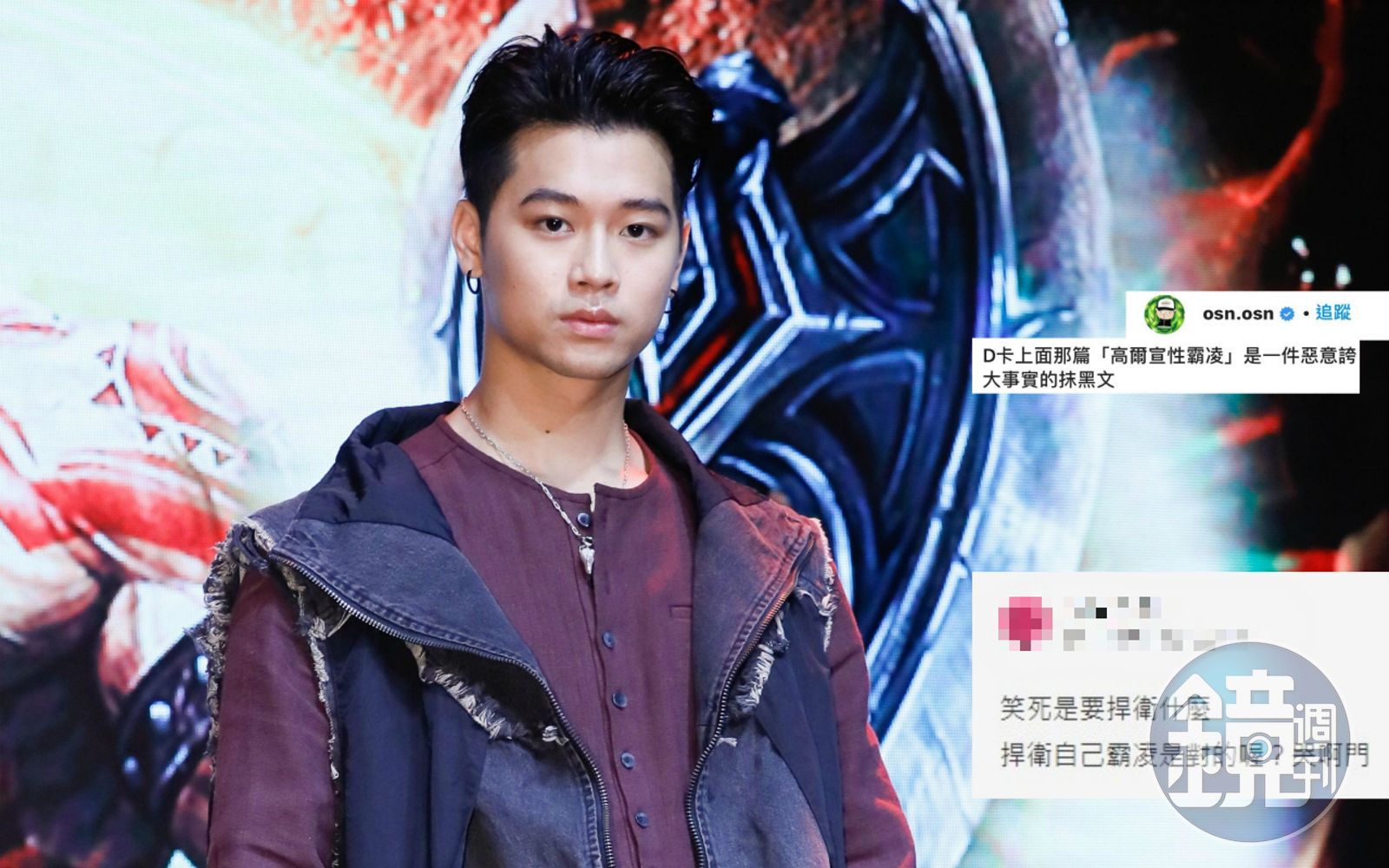 23歲的饒舌歌手高爾宣被視為新一代小天王,今年代言滿盆滿缽滿,媒體粗估進帳千萬。9月中,在大學生論壇Dcard卻突然出現一則爆料,揭發高爾宣2014年就讀萬芳高中時的黑歷史,指控他強脫同學衣物還拍下影片轉傳,讓受害同學身心受創得了憂鬱症。