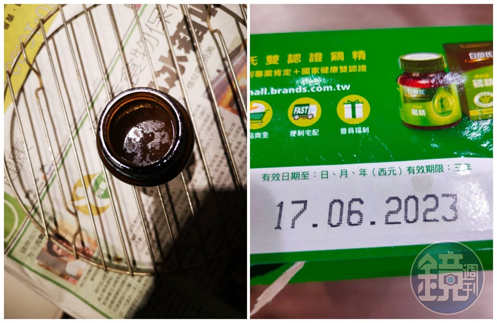 A女士表示,今年8月她在台北天母的全聯福利中心購買6瓶裝﹑售價300多元的白蘭氏雞精飲用,一次習慣喝2瓶的她,在打開第2瓶時卻聞到一股「刺鼻腥臭」,讓人難以下嚥;她把產品放在桌上仔細端詳,還發現液體上方有一層白色的懸浮物,於是立刻撥打白蘭氏雞精的客服專線反映。