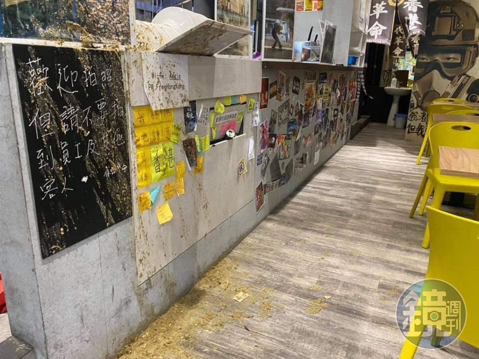 「保護傘」遭不明人士潑漆,廚房內部一片狼藉。(「獨眼新聞」臉書粉專提供)發布時間:2020.10.18 22:13 臺北時間