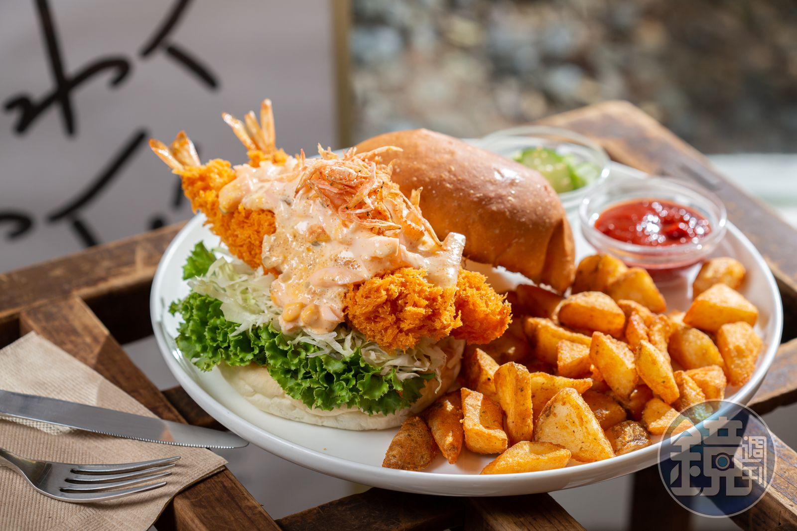 學設計出生的年輕老闆黃彥翔實在太愛吃早午餐,為了不讓歐式麵包、吐司限制對brunch 的想像力,他把炸蝦、豬排、炸雞搭配醬汁夾進麵包,「從菜色發想到每顆漢堡的口味,都運用食材、醬汁和滋味的設計組合邏輯」,於是黃彥翔研發出30款的漢堡口味。