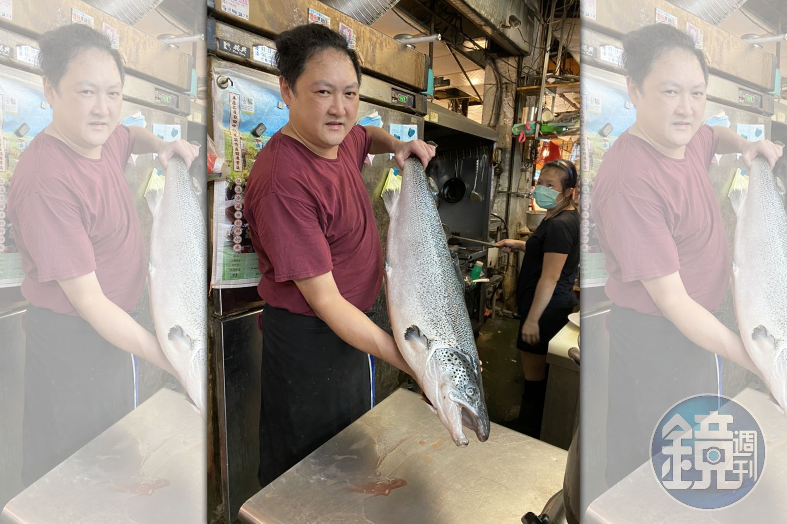 在眾多攤商中,曾善尤其喜歡「一本壽司」,老闆林家瑋從小立志當廚師,曾在多家日式餐飲店任職,累積一身好功夫,招牌料理鮭魚炒飯,是將一整尾的鮭魚放入烤箱,烤熟肉取出魚肉拍碎作為炒飯食材,魚骨、魚頭則用來熬味增湯,一份炒飯只賣90元,平均5天就要用掉一條大鮭魚。