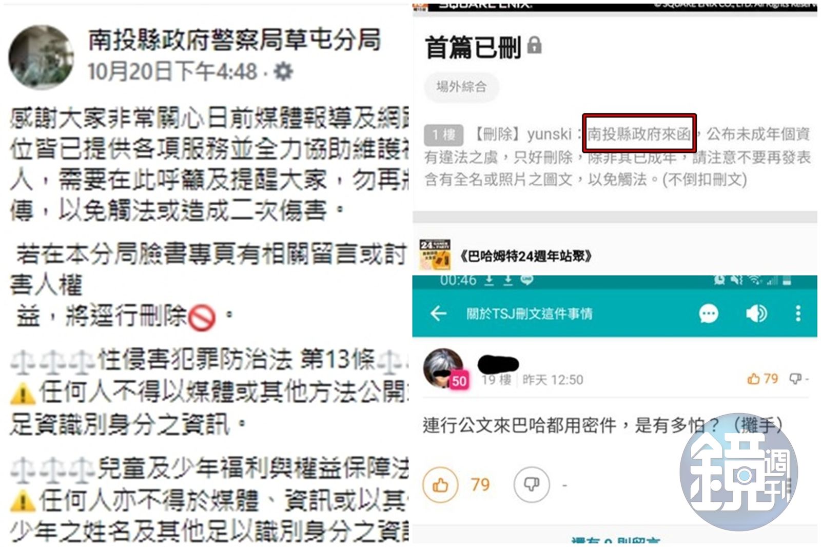 據了解,有關高中生涉嫌性侵的文章,紛紛在論壇《巴哈姆特》刪除消失,引發鄉民關注,據此站方事後解釋因「南投縣政府來函」,內容涉及公布未成年個資之疑慮,而刪除;站方也呼籲鄉民,除非已未成年,否則勿再張貼未成年相關個資、照片,以免觸犯法律,消息一出,讓網友質疑,相關單位想就此息事寧人。