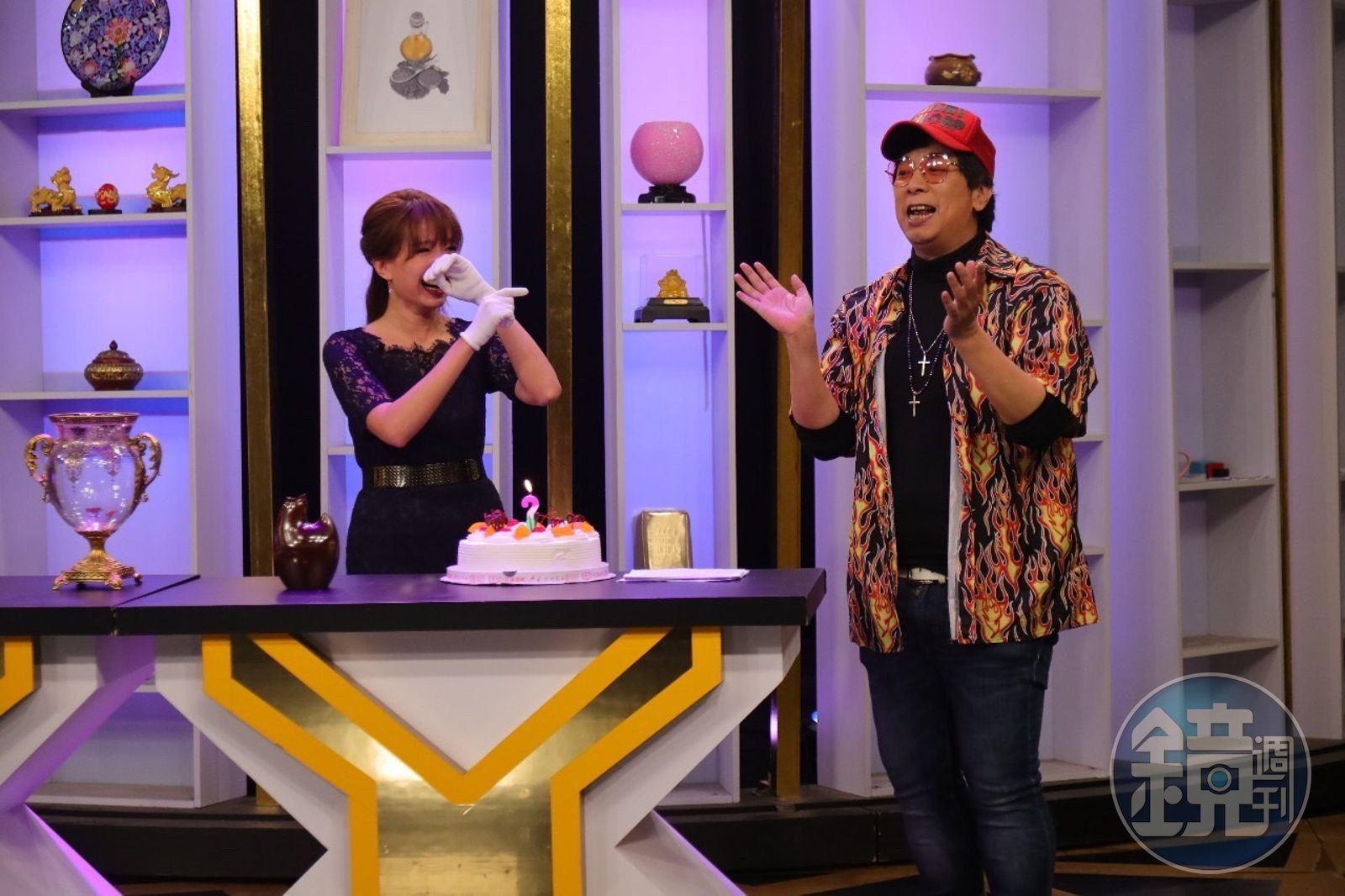 過沒多久,曹西平拿著生日蛋糕再度走進來,讓丁靜怡看見再也忍不住崩潰落淚說:「我要嚇死了啦!我都嚇到沒聲音了!」當曹西平請她許下生日願望,丁靜怡說:「第一個願望我希望曹大哥健健康康的,你不要再計較那個貓頭鷹了,它真的破了,是絕對修復不好的!然後你真的不要生氣!」眾人見狀全都笑翻。