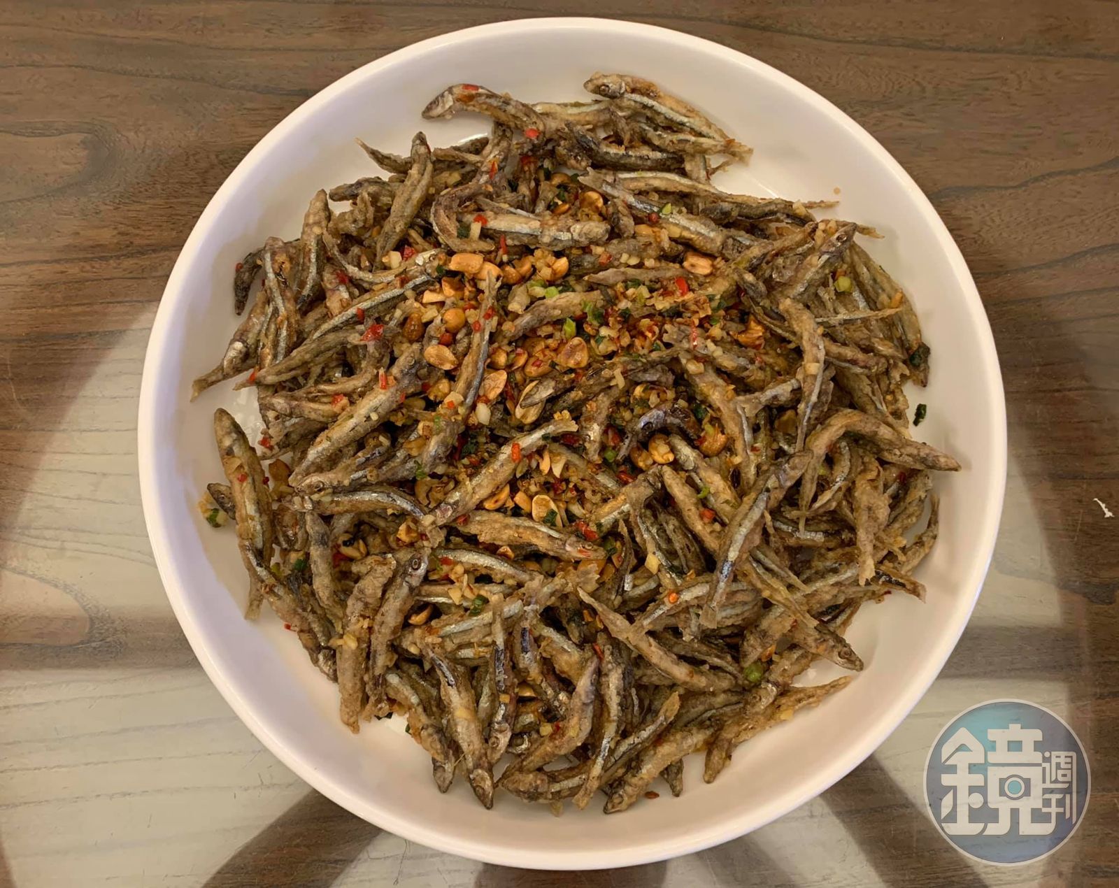 您不要小看這小菜,大師傅功力全在這兒。市場買來的丁香魚有兩種,一生一熟。熟的已處理過,可以爆炒但失之太硬,最好買新鮮、生的丁香魚,但新鮮丁香魚不禁炒,很容易肉碎糊成一團,所以功夫在下面兩點。一、丁香魚要用炸的。二、蒜蓉、花生、蔥花、辣椒末,要單獨炒香後拌入丁香魚,而非丁香魚與之同燴。