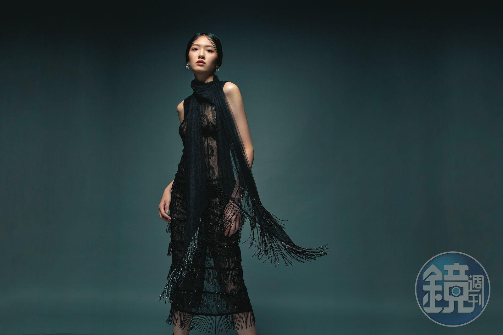 輕與重的相對正如蕾絲洋裝的輕薄與串珠流蘇的沉甸甸,看似薄透如蟬翼的蕾絲讓肌膚幾乎能被直視,但那些細緻的珠串啊,微小卻積聚出的能量極其強大,重量證明了它存在的一切意義。