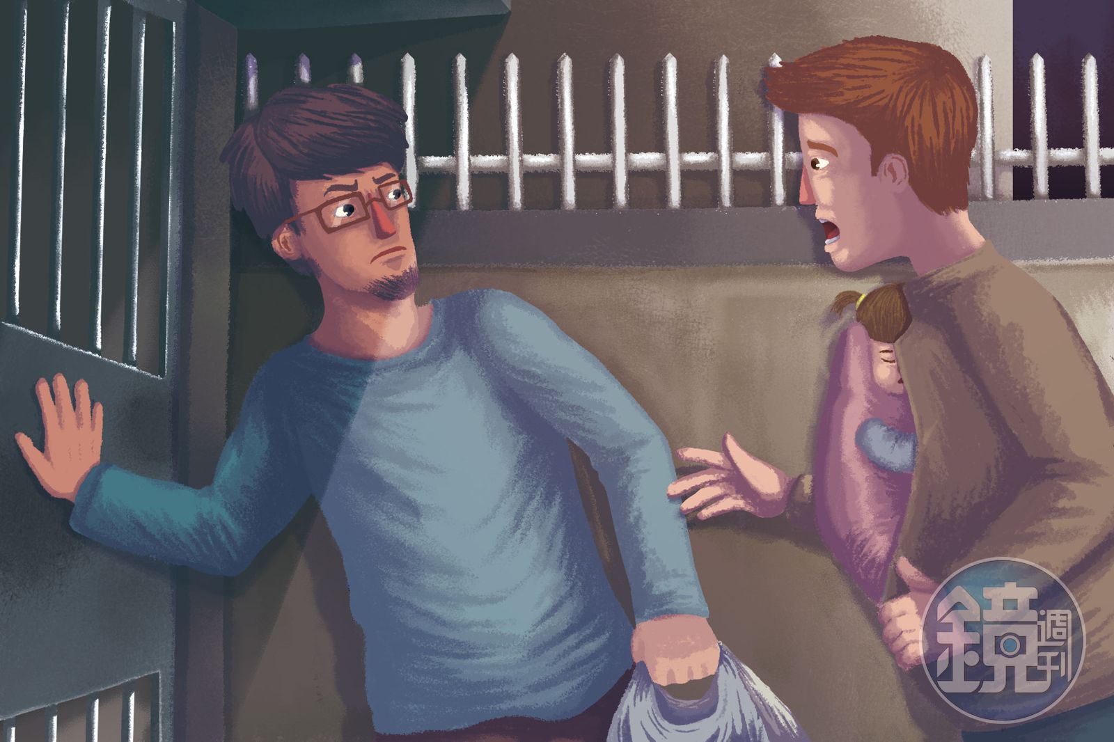 目送大叔離開後,他緊繃的神經忽地放鬆,背也弓了起來,自嘲方才的失態,就在此時,身後一名男子提著兩袋食材日用品接近。