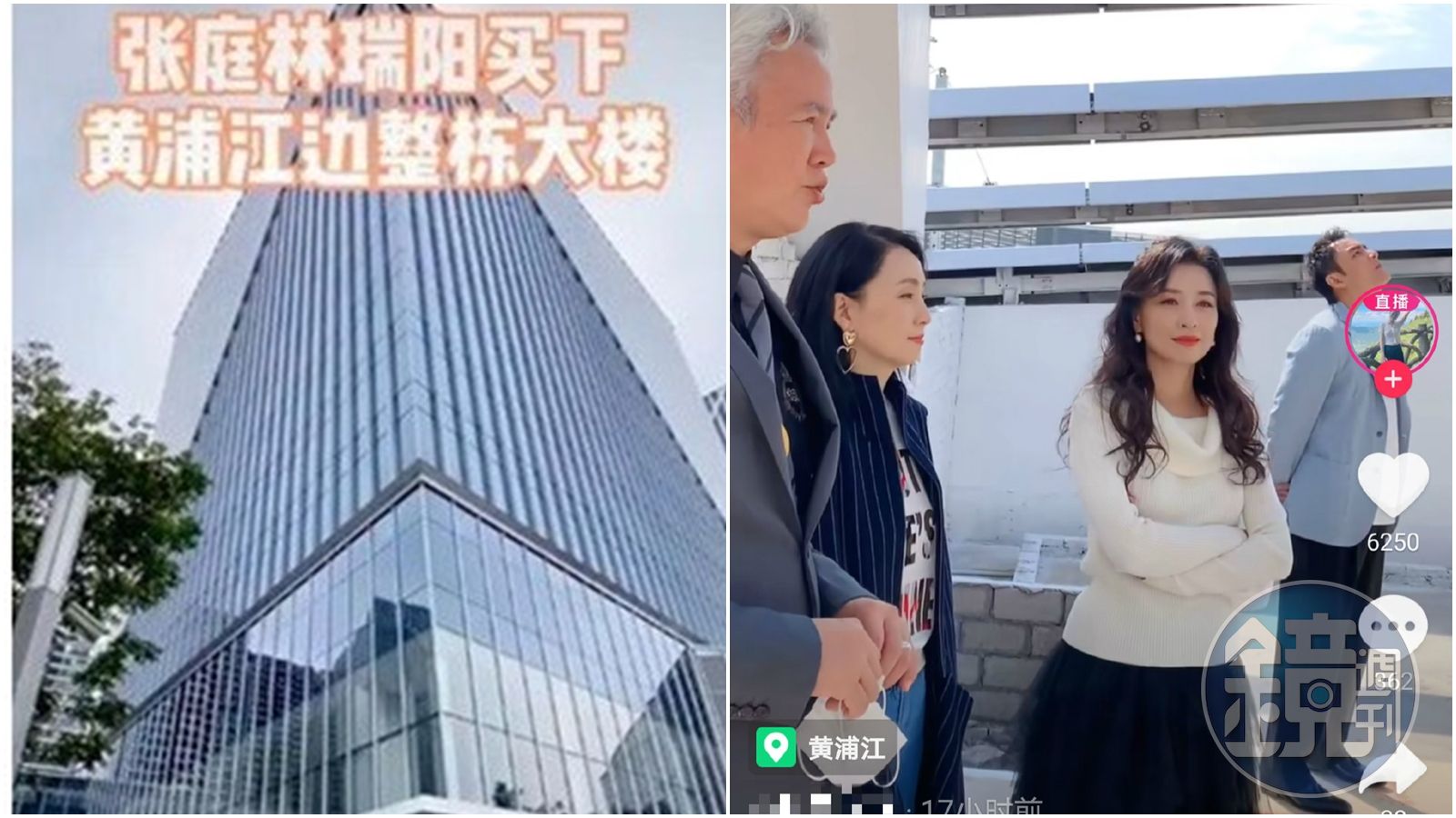 張庭與林瑞陽上月被中國媒體爆料,買下黃浦江邊一棟高達10多層的大樓,該地不僅是核心地段還可以眺望美景,計畫要當公司的新總部,林瑞陽還被拍到拄著拐杖到現場監工的畫面,據悉這棟大樓要價17億人民幣(約73億元台幣)。